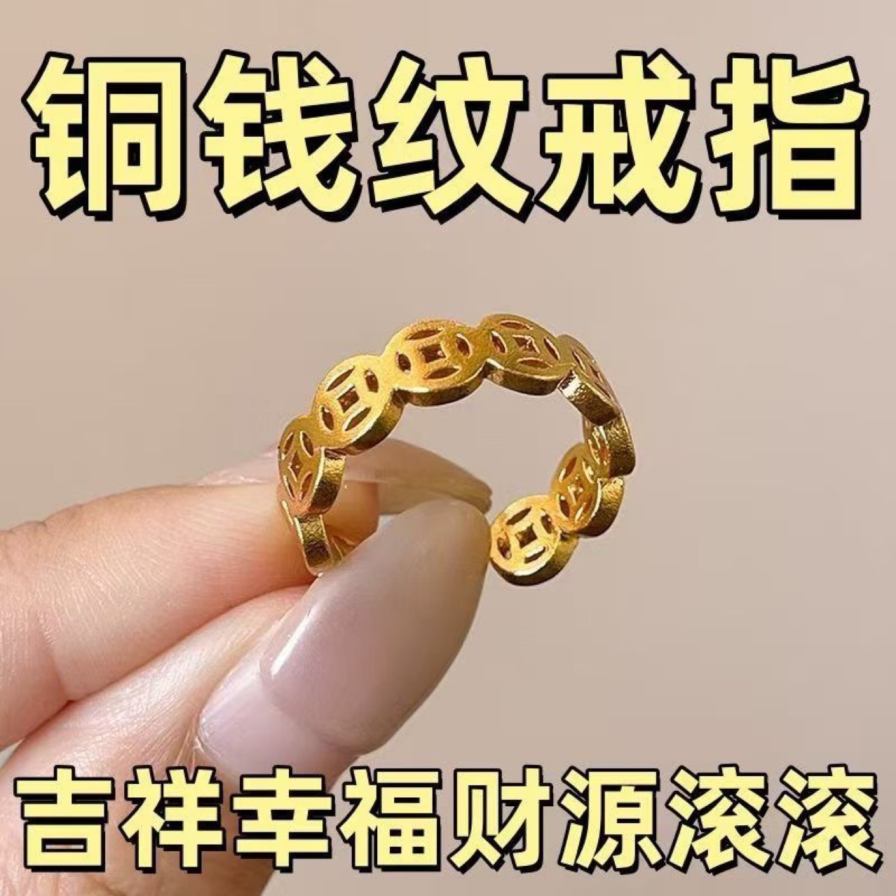 高模造ベトナムサンドゴールド銅貨リング女性の指輪 Qianduoduo オープントランスファーリングコインリング銅貨リング
