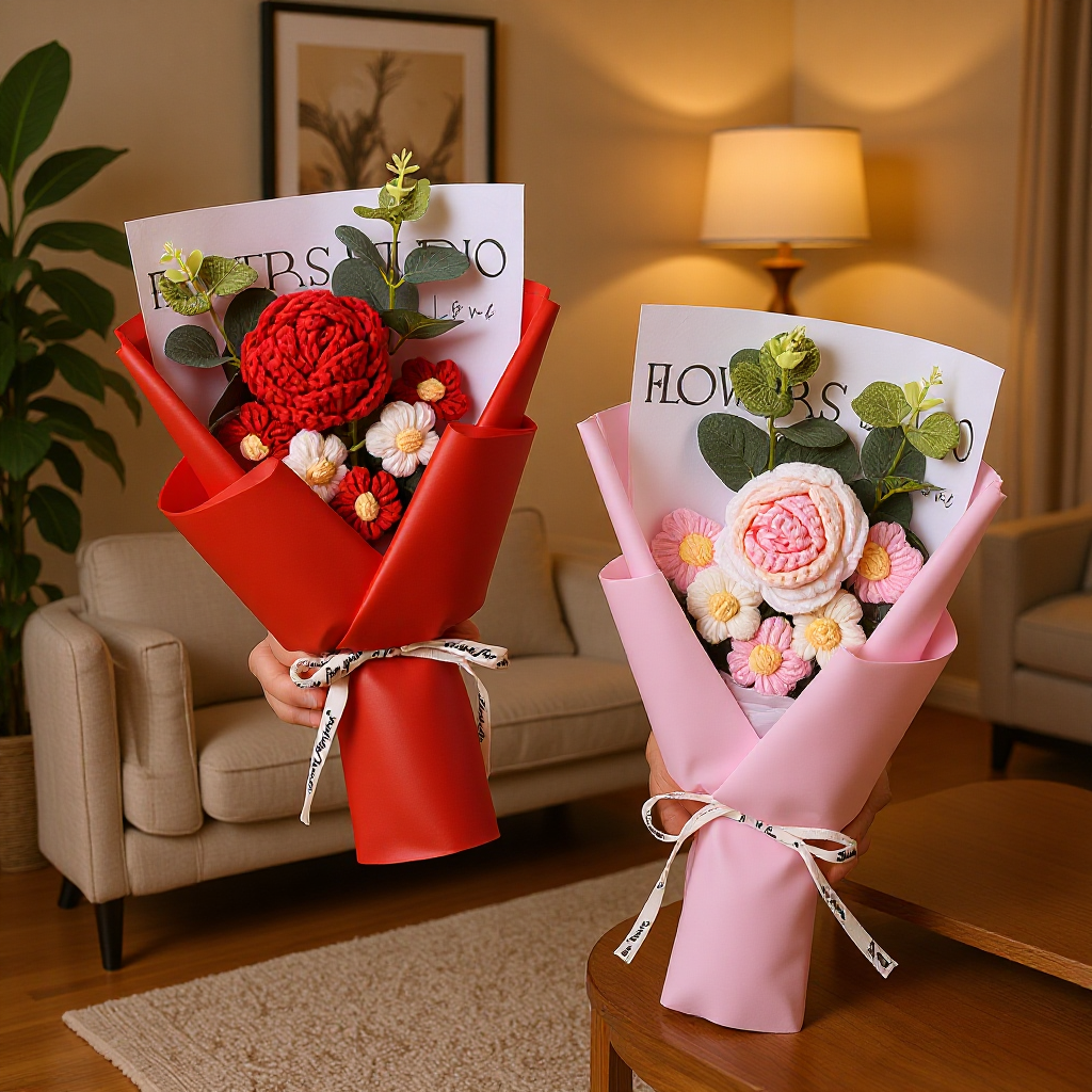 女性教師の彼女へのクリスマスプレゼント、造花、毛糸の花束、誕生日プレゼント、手編みの花、屋台の商品