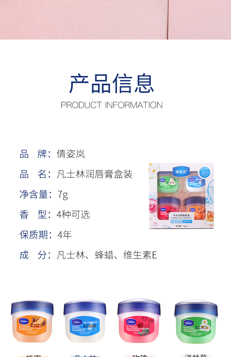 銭姿嵐ワセリン潤唇膏唇膜保護唇膏経典修保湿薔薇潤い補水小q缶7g