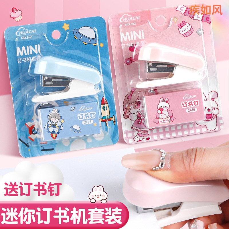ミニ小型ホッチキスかわいい漫画ミニホッチキスセット高颜値携帯学生文房具プレゼント
