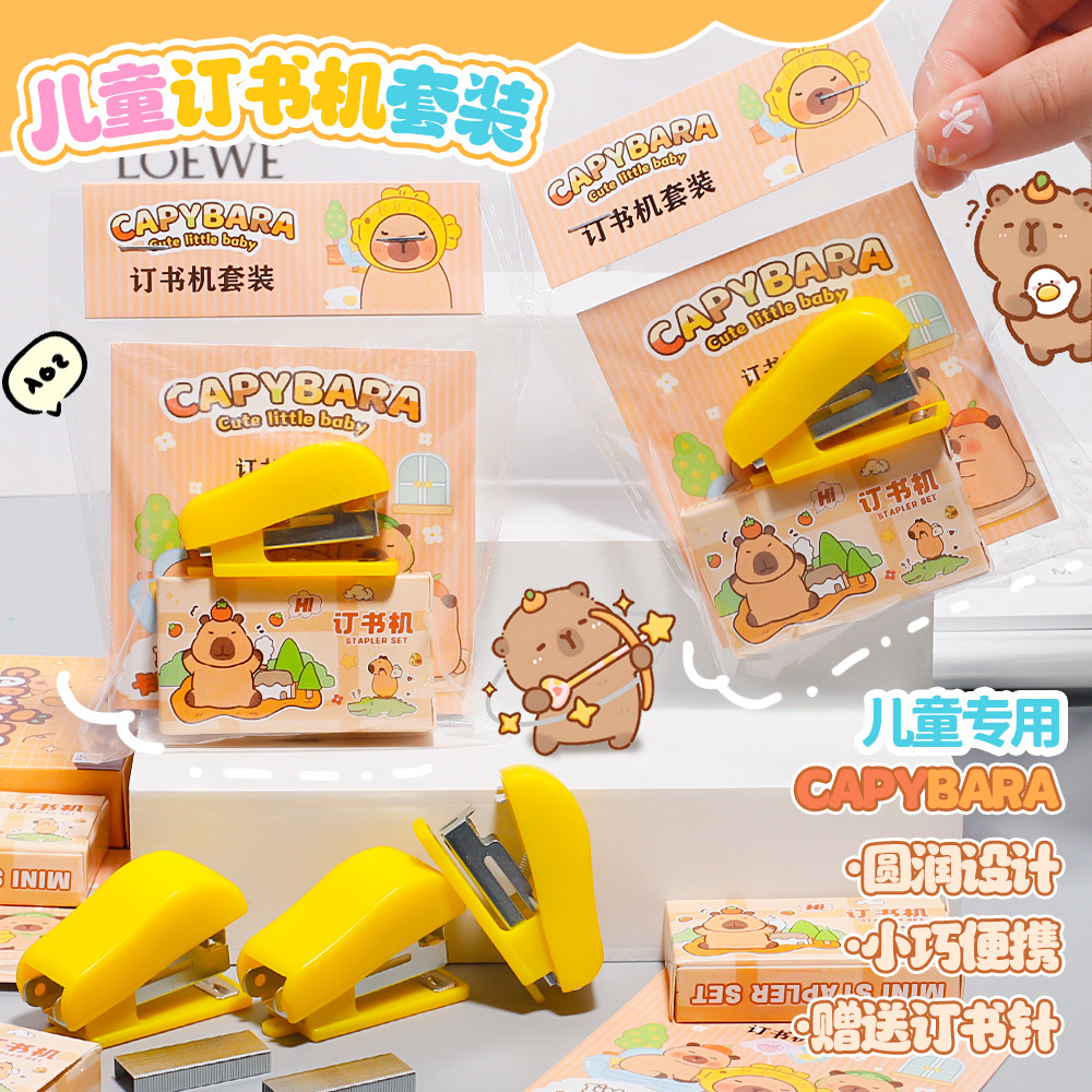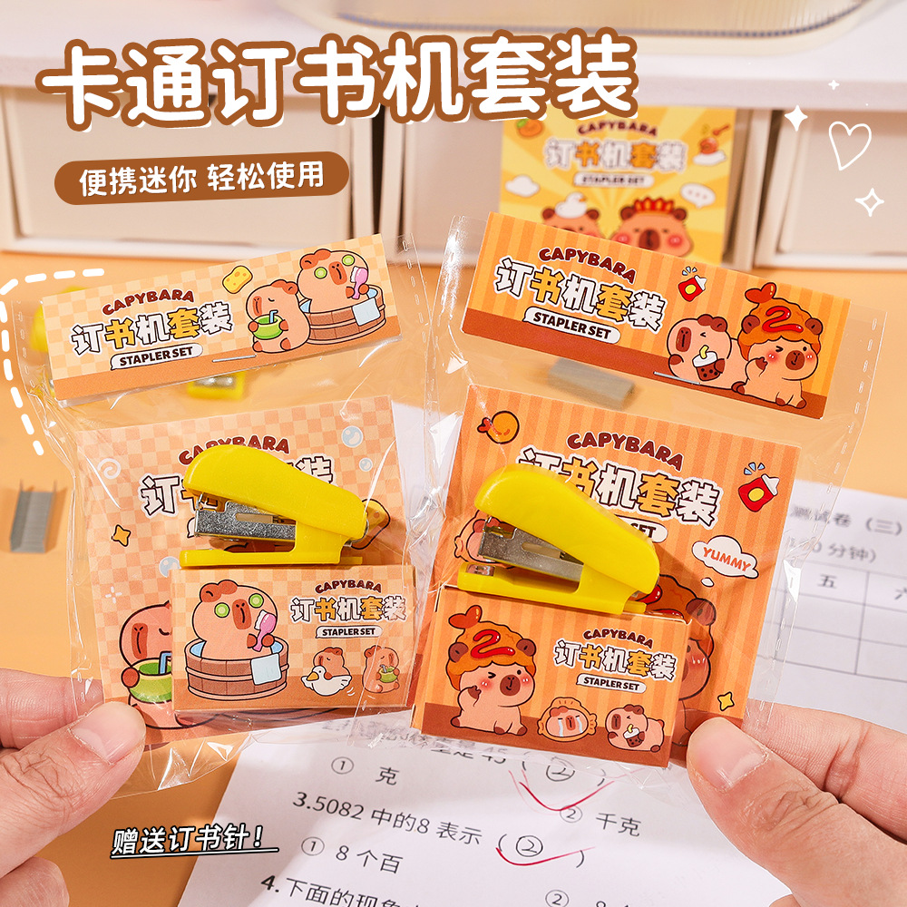 卡皮巴拉订书机套装可爱卡通迷你钉书机学生用创意文具小礼品批发