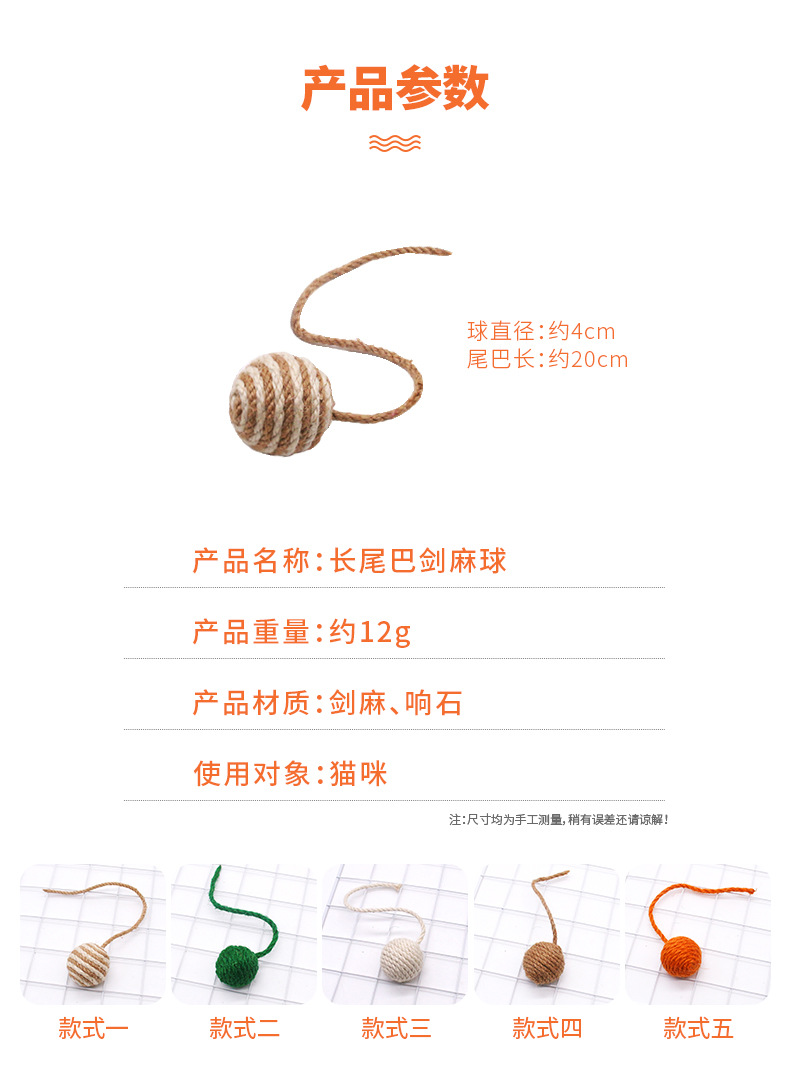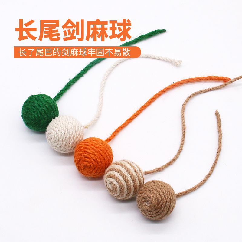 ペットの猫が自分で楽しむことができ、麻ボールをぶら下げて退屈を和らげ、噛みつきや音を鳴らすおもちゃ、シングルテール麻ボール用品