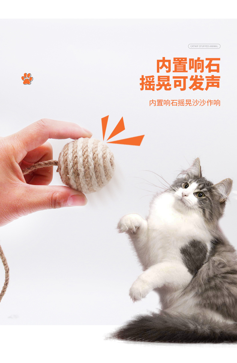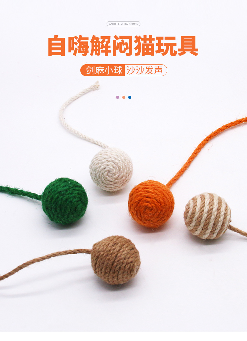 猫玩具剑麻球 带羽毛猫咪耐咬磨牙发声玩具 猫抓球逗猫宠物用品