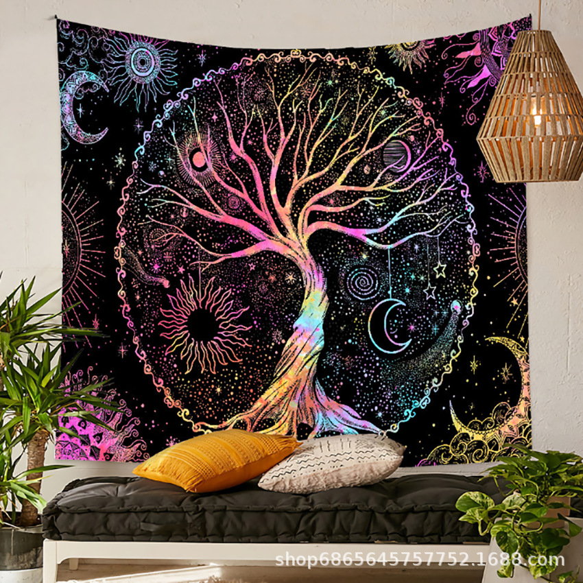 欧米の部屋装飾ボヘミアンタペストリー生命木背景布ins風白黒シンプル掛け布絵寝室