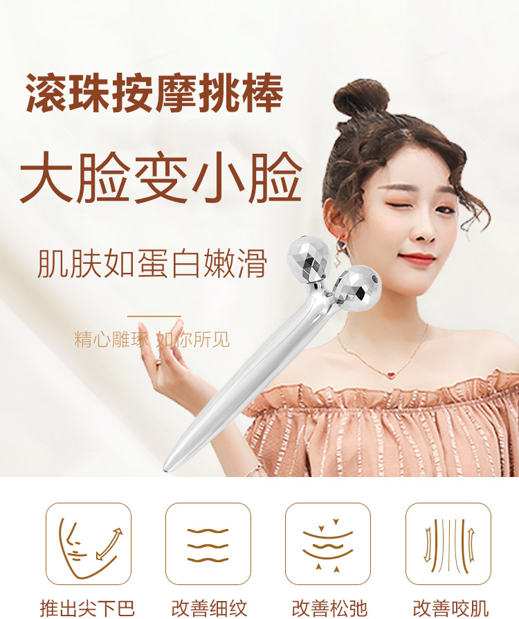 外国貿易専用家庭用ミニ金属美容棒顔の形をした肌マッサージ器手動3dローラーマッサージ器