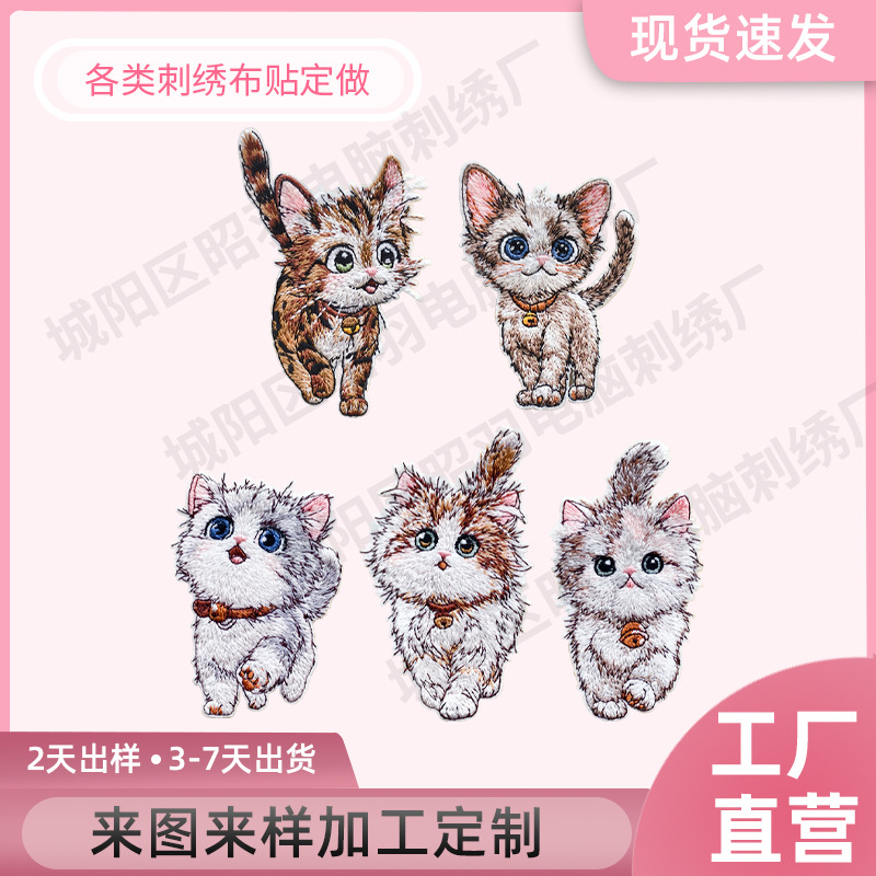 跨境可爱猫咪刺绣布贴卡通自粘电脑绣花贴服装辅料缝纫补丁贴配饰
