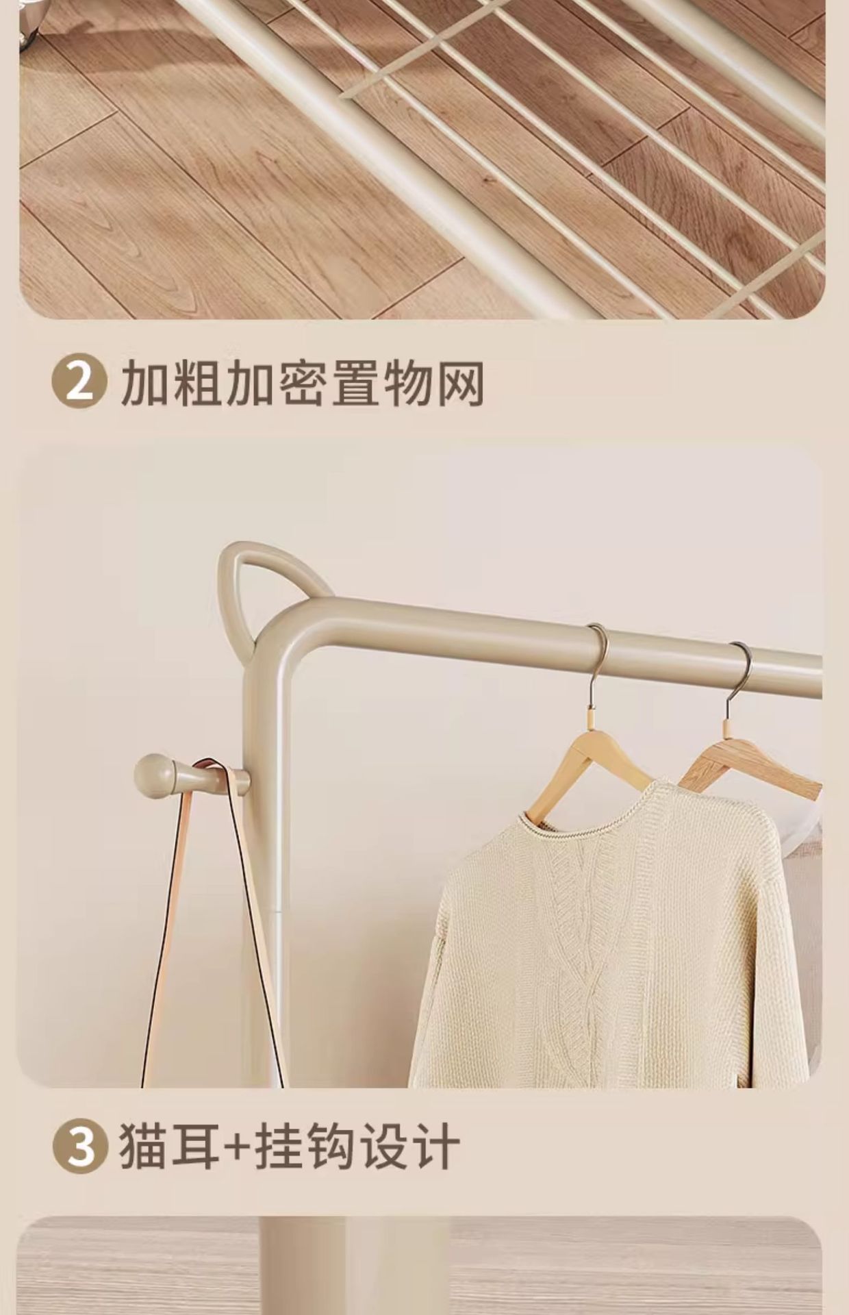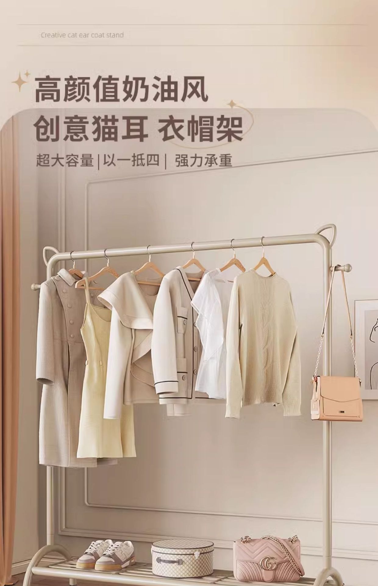 クリーム風ハンガーが床に落ちた寝室の家庭用ネット赤プーリーが服を掛けている棚の冷たいハンガーバルコニーが布団を干している