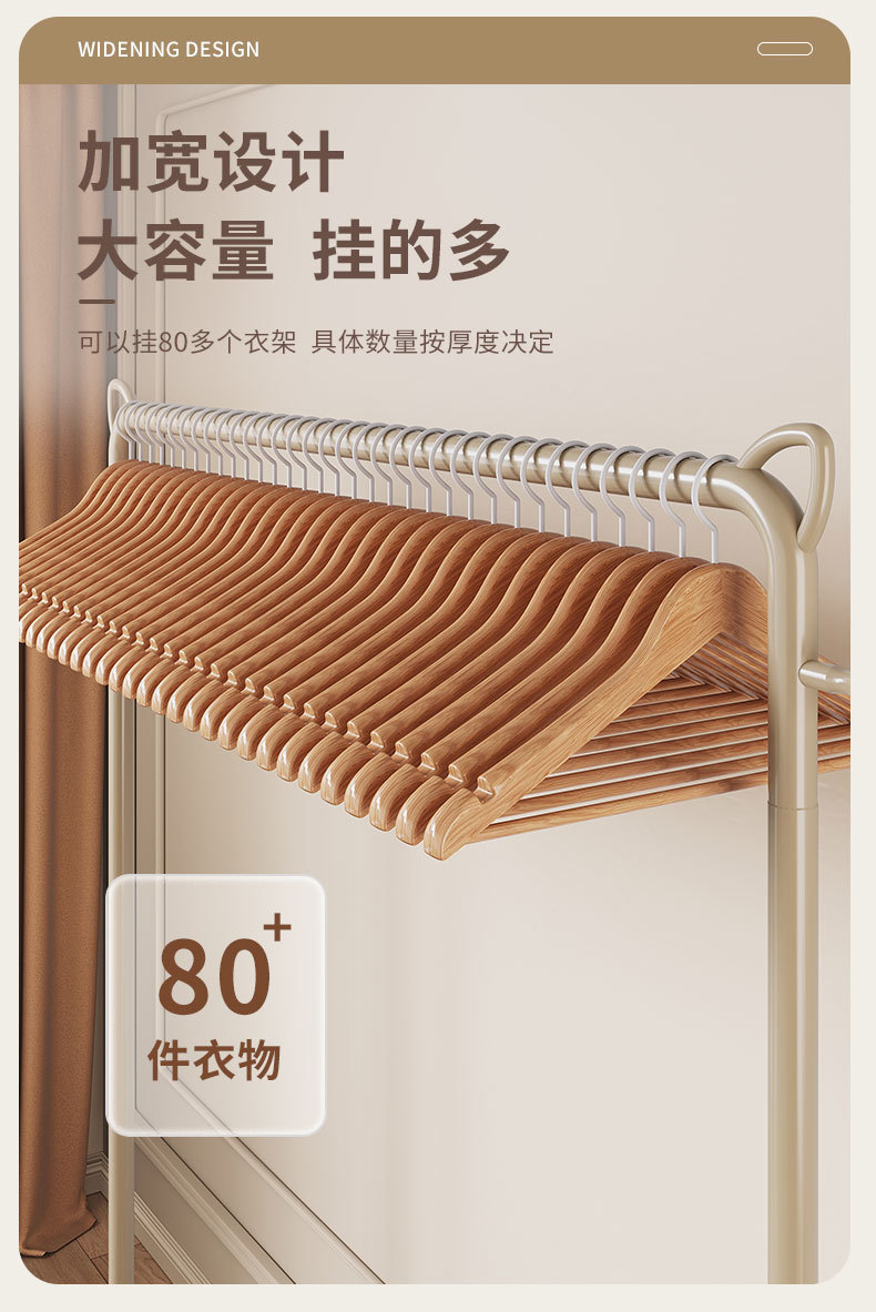二重ポール多層衣類ハンガー、家庭用床置き組み合わせ、可動式モダンシンプル衣類ハンガー、床置き移動式