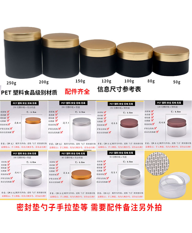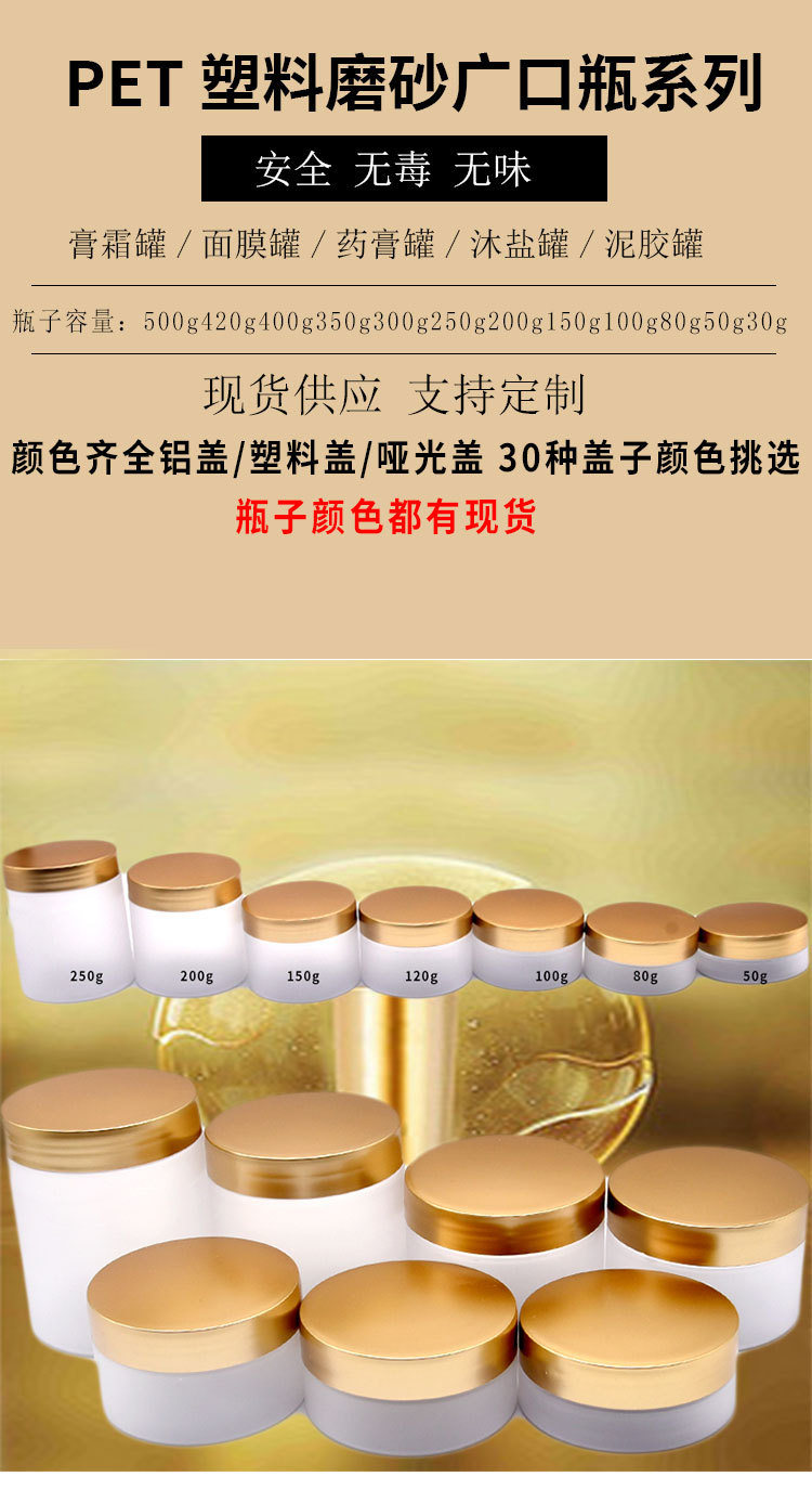 現物プラスチックカバーpetプラスチックフロスト広口瓶スキンケアクリームクリーム分注瓶マスク缶アイクリーム缶