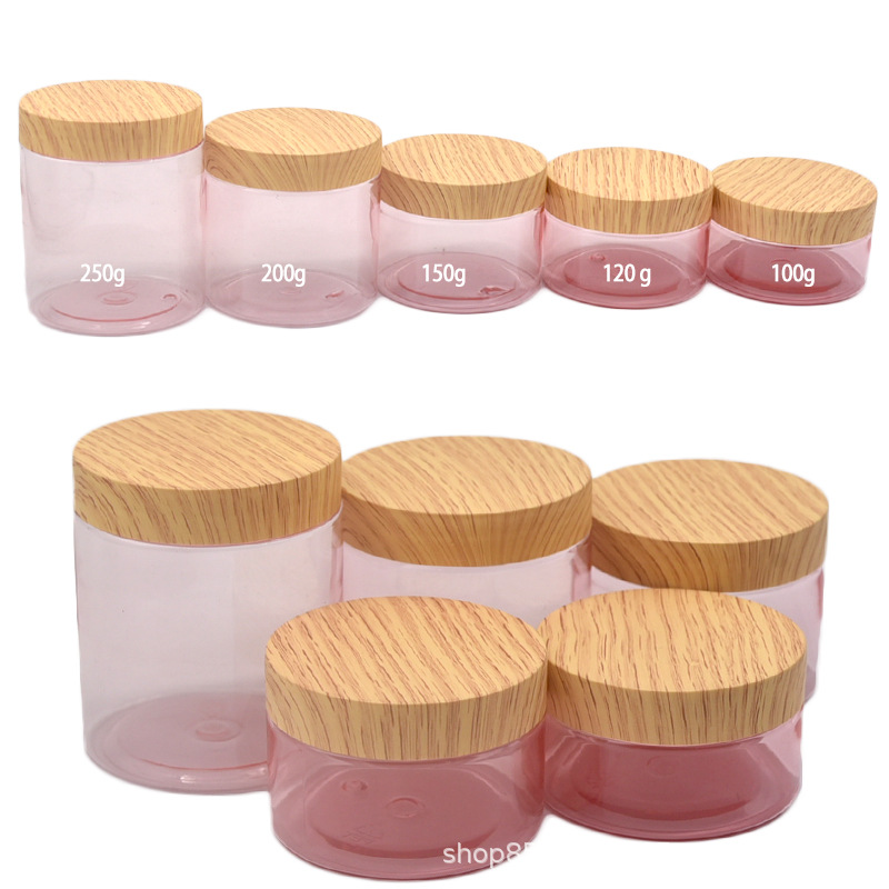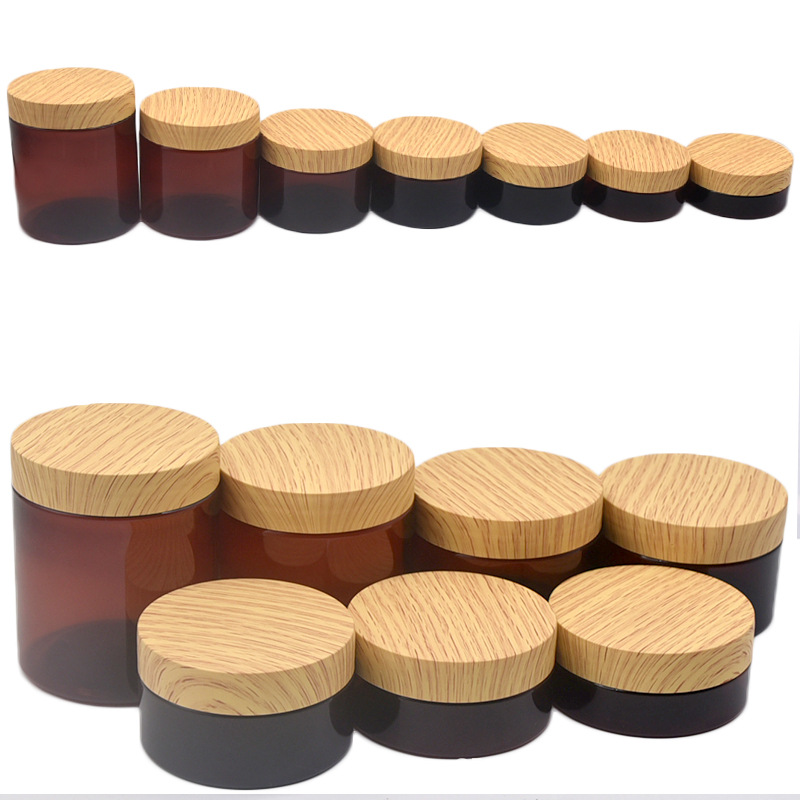 Petプラスチック広口瓶木目蓋クリーム瓶化粧品分注空瓶マスク缶アイクリーム缶クリーム