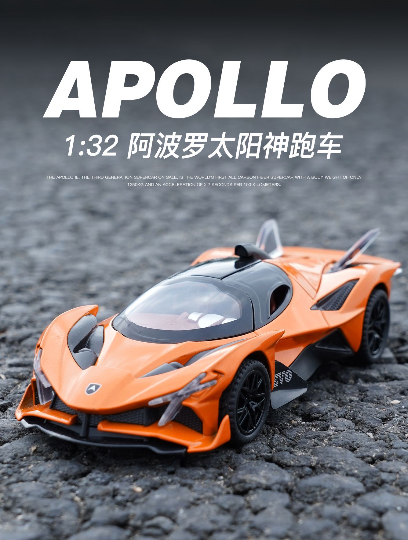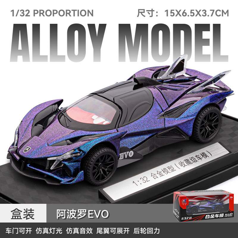 [盒装1:32阿波罗EVO跑车合金声光回力儿童玩具小汽车仿真模型车