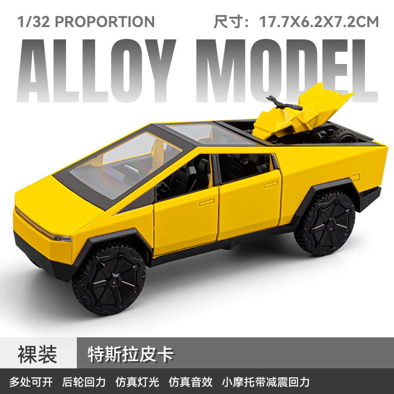 车致1:32 T 皮卡彩色版合金声光回力六开汽车模型玩具带摩托盖板
