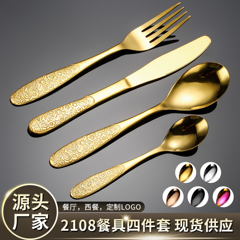 ソースメーカー410ステンレス柄ハンドル食器4点セットスポットホテル洋食店ステーキナイフフォークスプーン