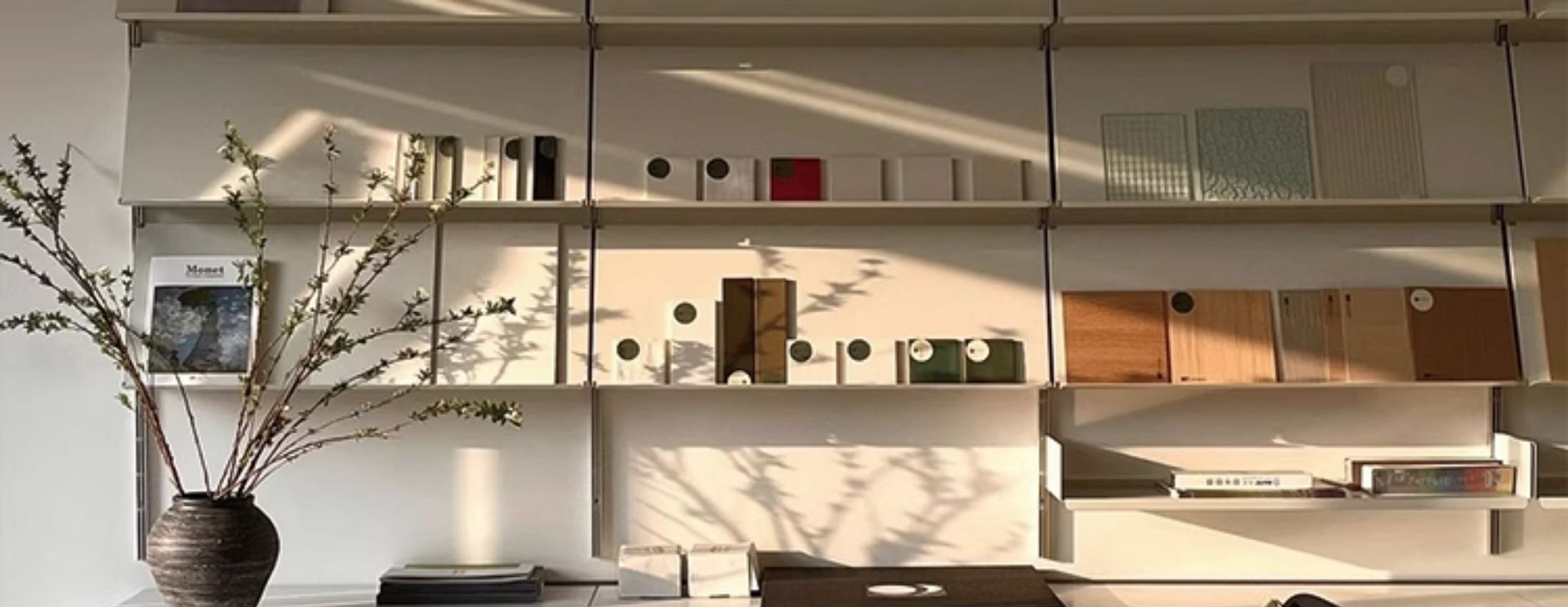 壁掛け式トラック型本棚 vitsoe606 収納ラックシステム 壁掛け式背景壁収納ラック ハウス型壁掛けラック