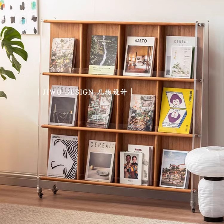 雑誌棚客間新聞収納棚北欧レトロ移動床本棚読書展示棚ins