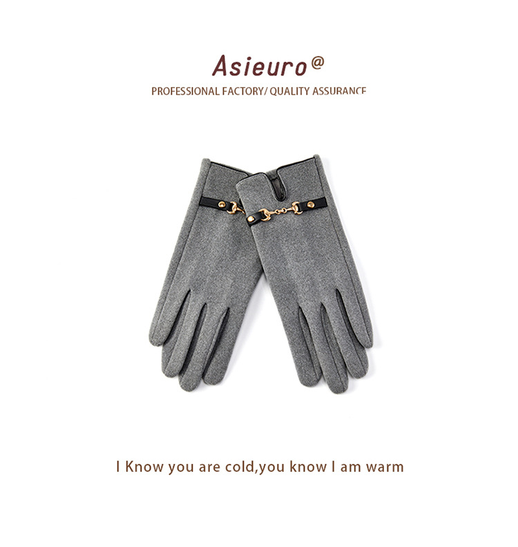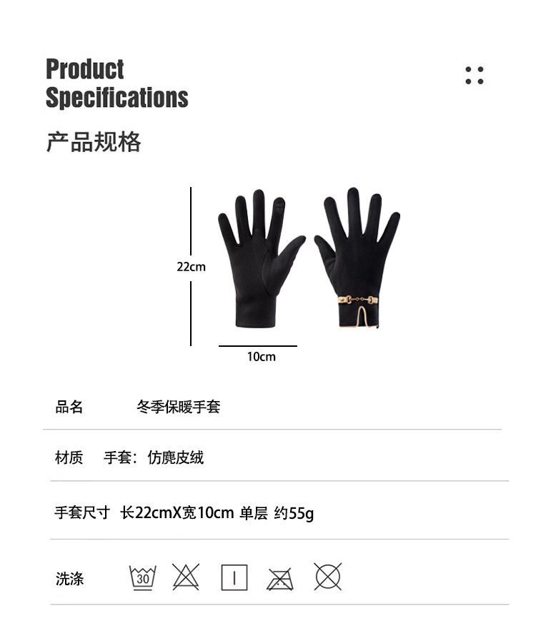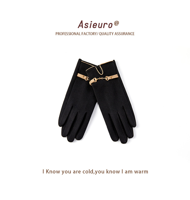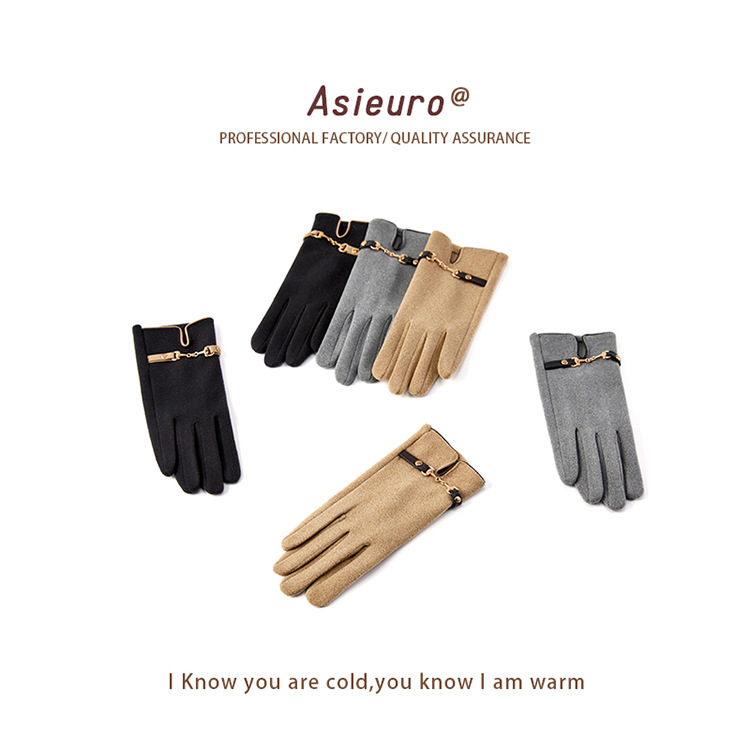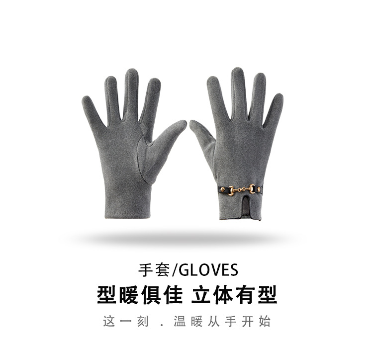 新款女式手套冬季德绒触屏玩手机链条防风保暖手套开车骑行加绒厚