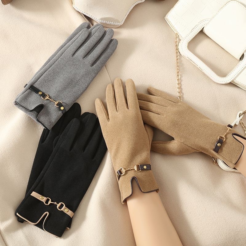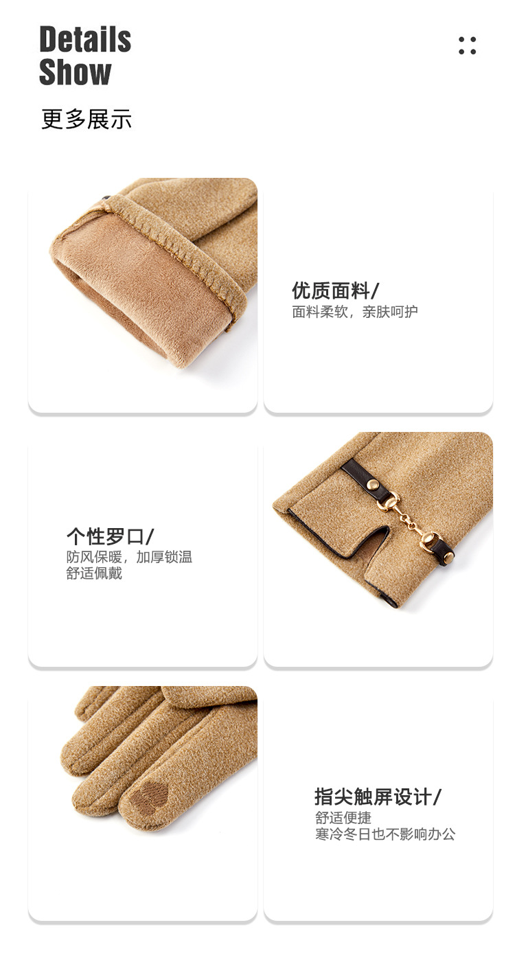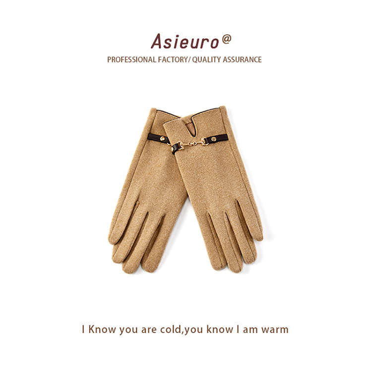 手袋保温女性秋冬防寒保温防風卸売り手袋とベルベットタッチパネルがスエード手袋に乗る