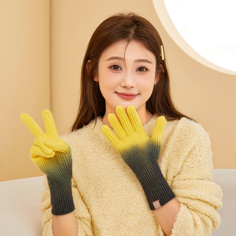保温手袋の韓国版デザイン感のある色合わせのニット手袋の女性はタッチパネルの毛糸に触れることができます。