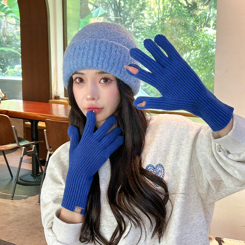 韓国のキャンディー色の純色の毛糸のニットの手袋の冬の露指の女性のタッチパネルの保温の防風の自転車は卸売りを指します。
