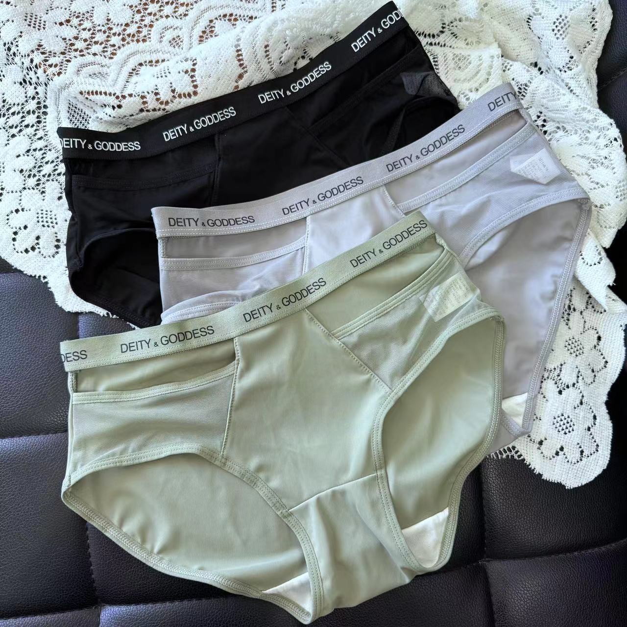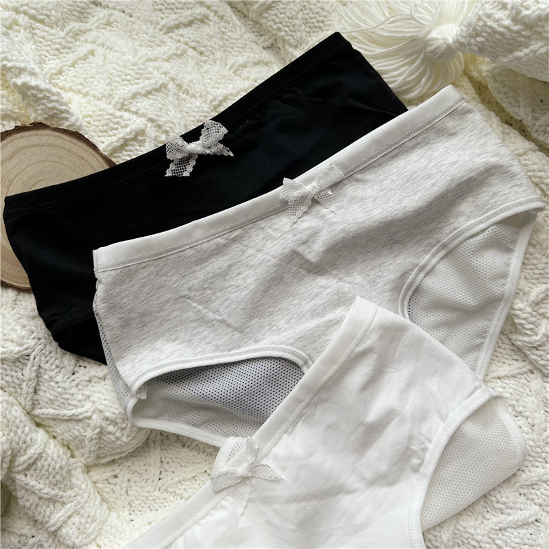 【70-110斤】シンプルで快適な綿 + ネット糸黒白灰かわいい低腰女子下着789
