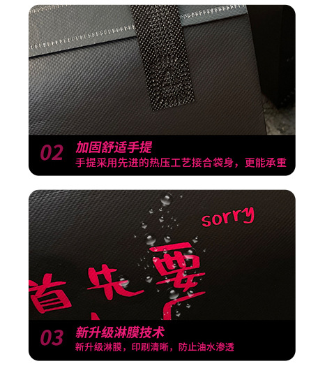 寝食忘れ使い捨て販売保温手提げ厚手不織布梱包飲食ハンバーガー循環包装袋