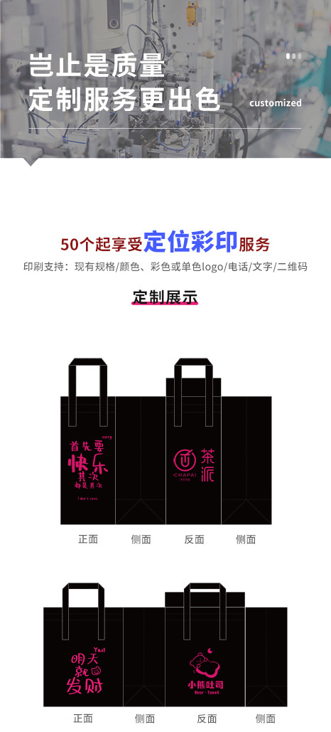 シンプルで厚い不織布袋手提げ袋高級洋服店大容量包装袋レジ袋ギフト袋