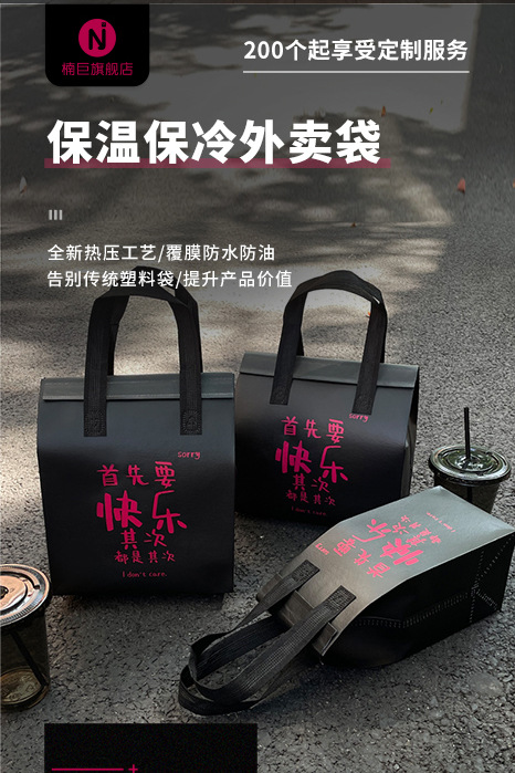 ネットレッドの出前保温包装袋不織布アルミフィルム手提げ袋ミルクティーケーキ飲食包装ギフトバッグ