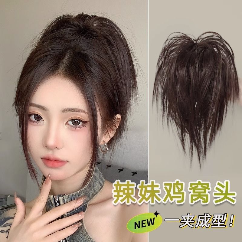 鶏の巣の団子の頭のかつらの女性の高い馬尾は鶏の毛のはねの髪を染めます。