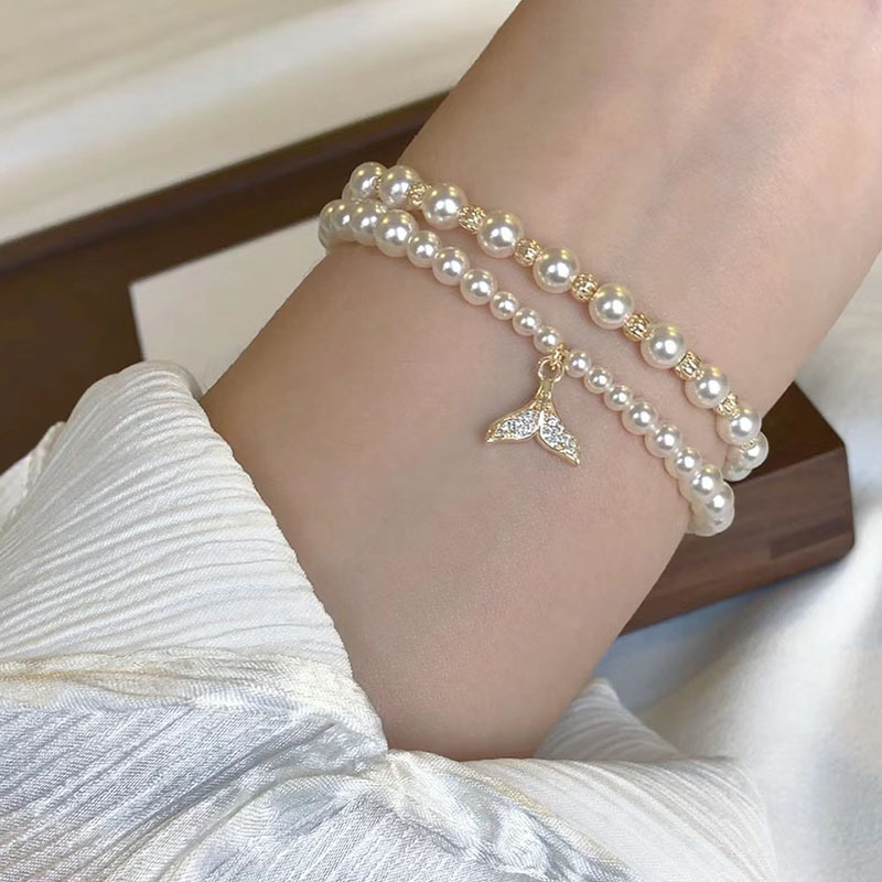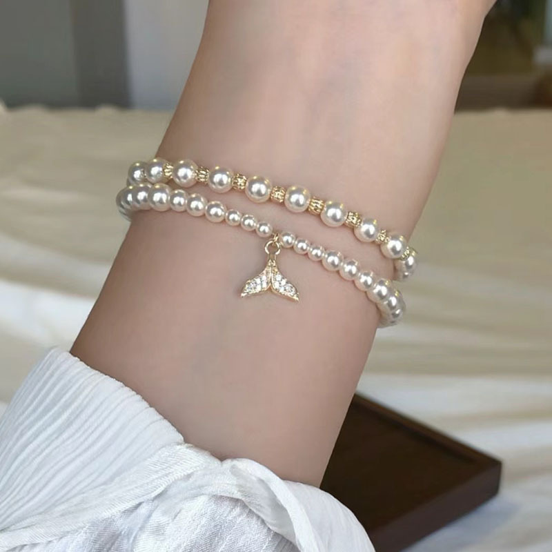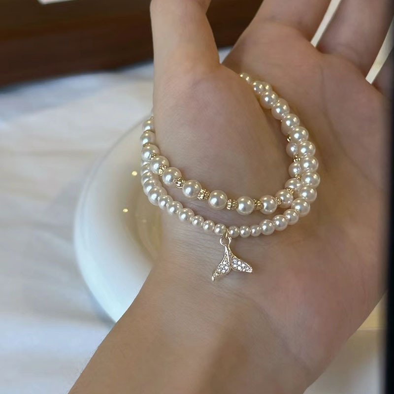 フランス風復古風魚尾二重真珠ブレスレット2023年新型大衆高級感ファッション精致風アクセサリー