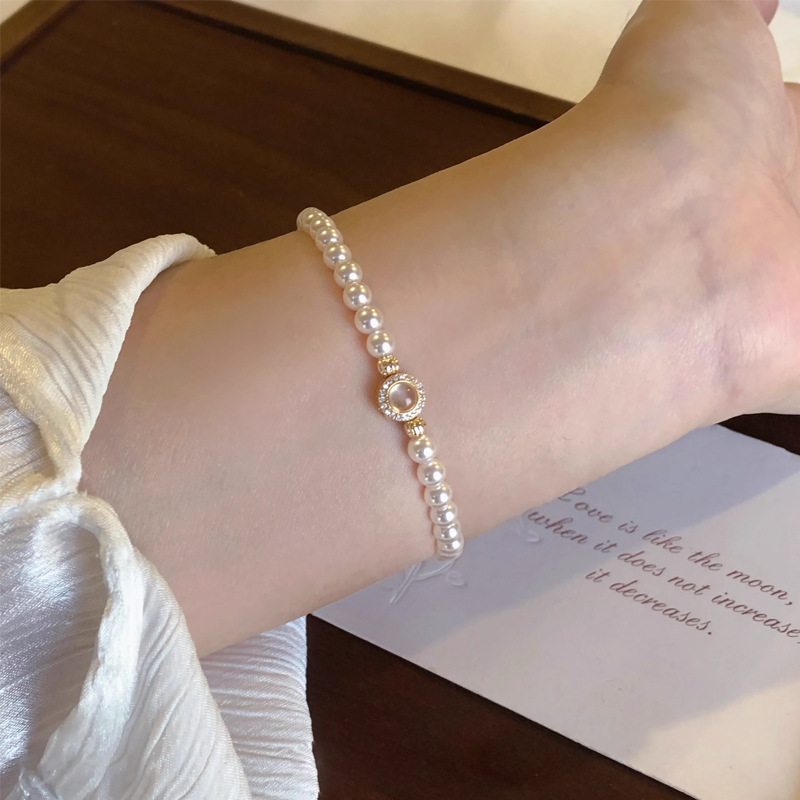女の子用天然水泡翡翠パールブレスレット、軽い高級感とハイエンドのクリスタルジルコンブレスレット、ニッチな翡翠ビーズブレスレット
