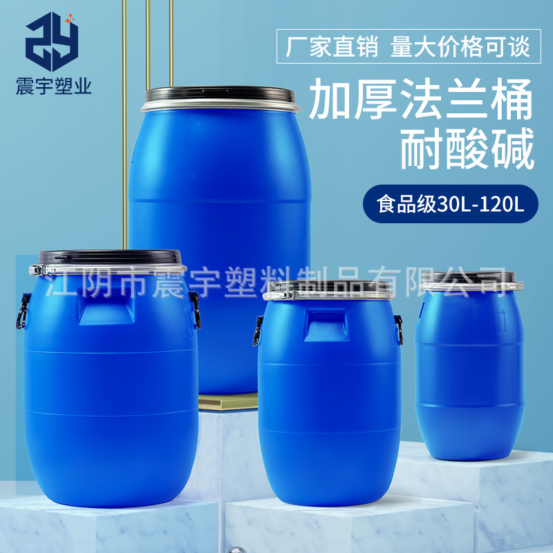 メーカー卸売フランジバレルカバー肥厚プラスチックバレル 50l カバー付き工業用ダブルリングバレル発酵バレル大 200 リットル
