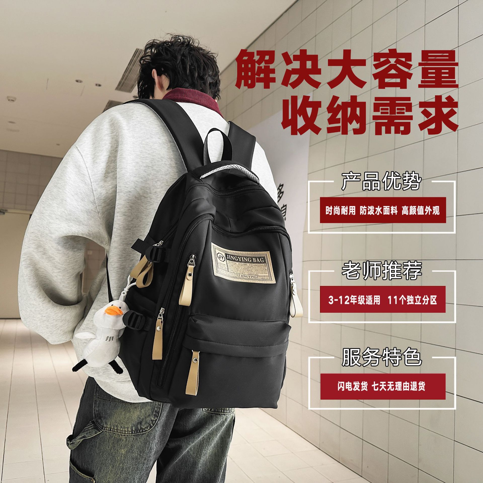 跨境货源时尚百搭校园风初中生书包男大学生大容量背包男双肩包