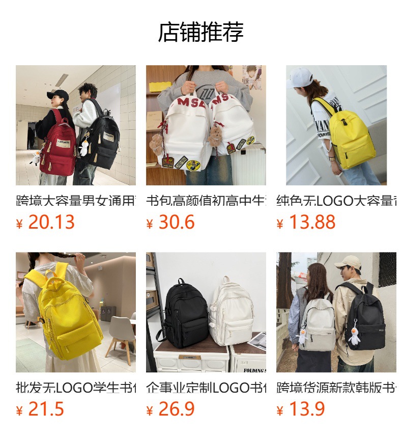 企事业定制LOGO书包初中生双肩背包潮流校园风纯色简约大容量背包