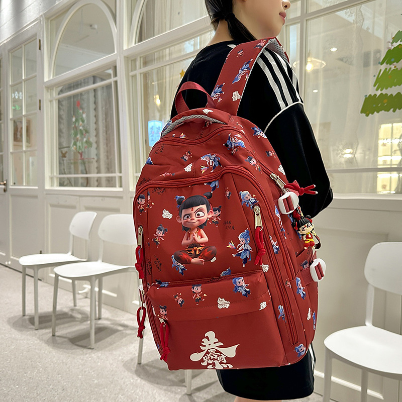 卸売供給源:哪吒漫画柄スクールバッグ、小学生用防水リュックサック、プリント入り高級感、高颜值、軽量バックパック