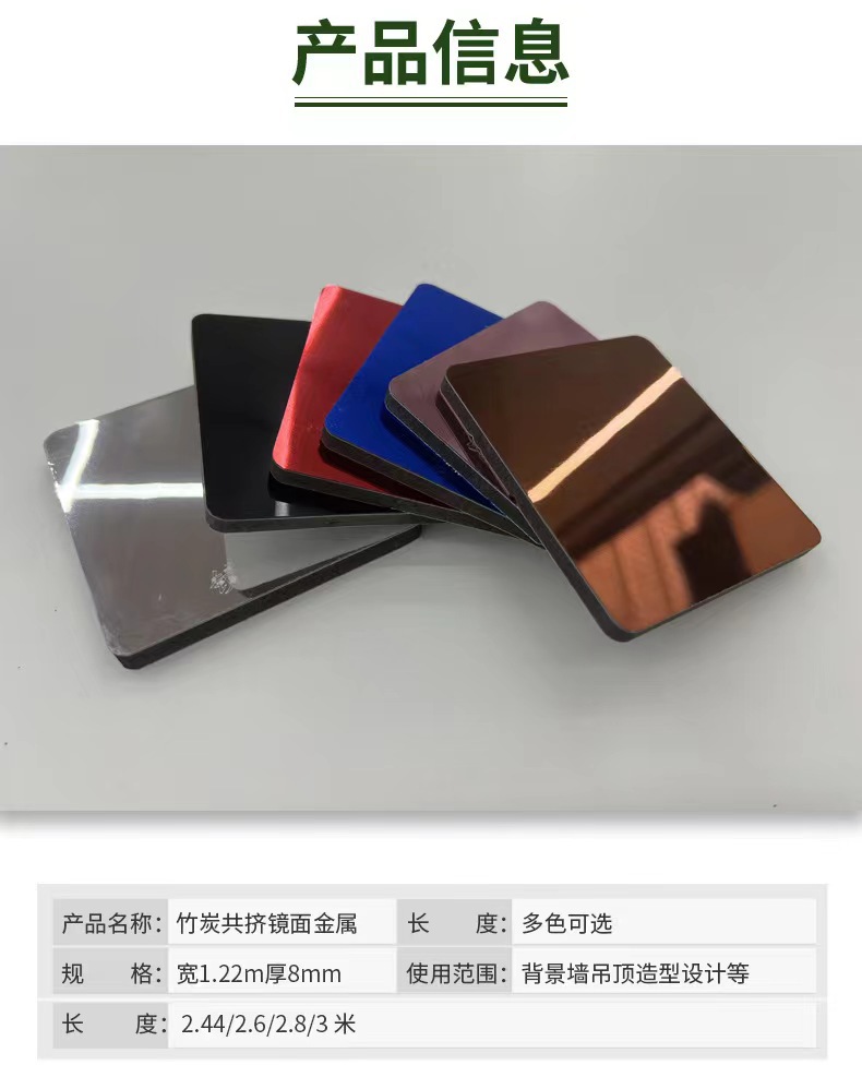 镜面装饰板高镜面板婚庆镜面碳晶板吊顶竹炭木镜面板银镜饰面板