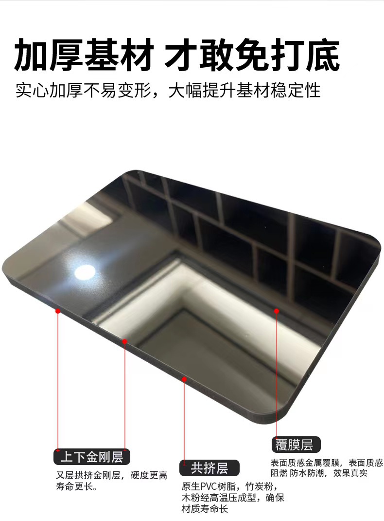 竹炭木镜面板高镜面装饰板吊顶饰面板镜面碳晶板木饰面板护墙板