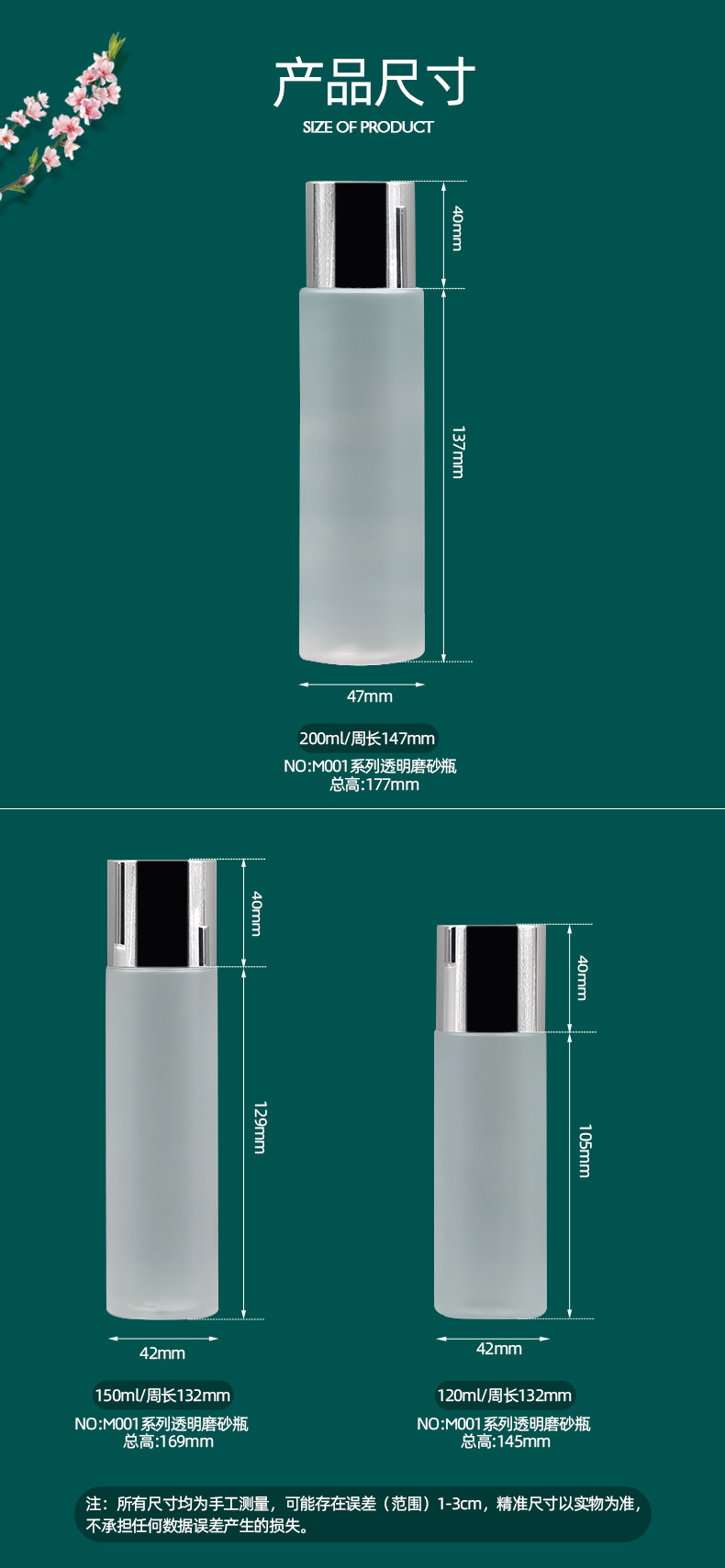200ml水乳セット瓶100ml直肩フロスト透明クリーム瓶化粧水瓶スキンケア瓶包装材工場