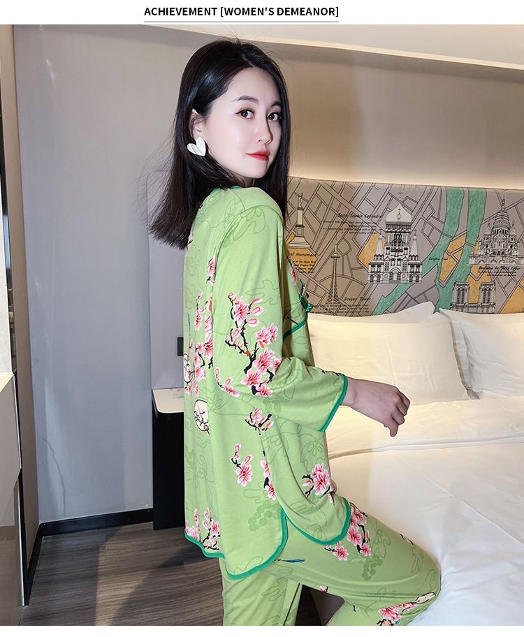 秋冬の新型パジャマの女性の徳の絨毯の保温のスーツの国風の盤は大きいサイズのゆったりしている部屋の服の2つのセットを掛けて外に着ることができます。