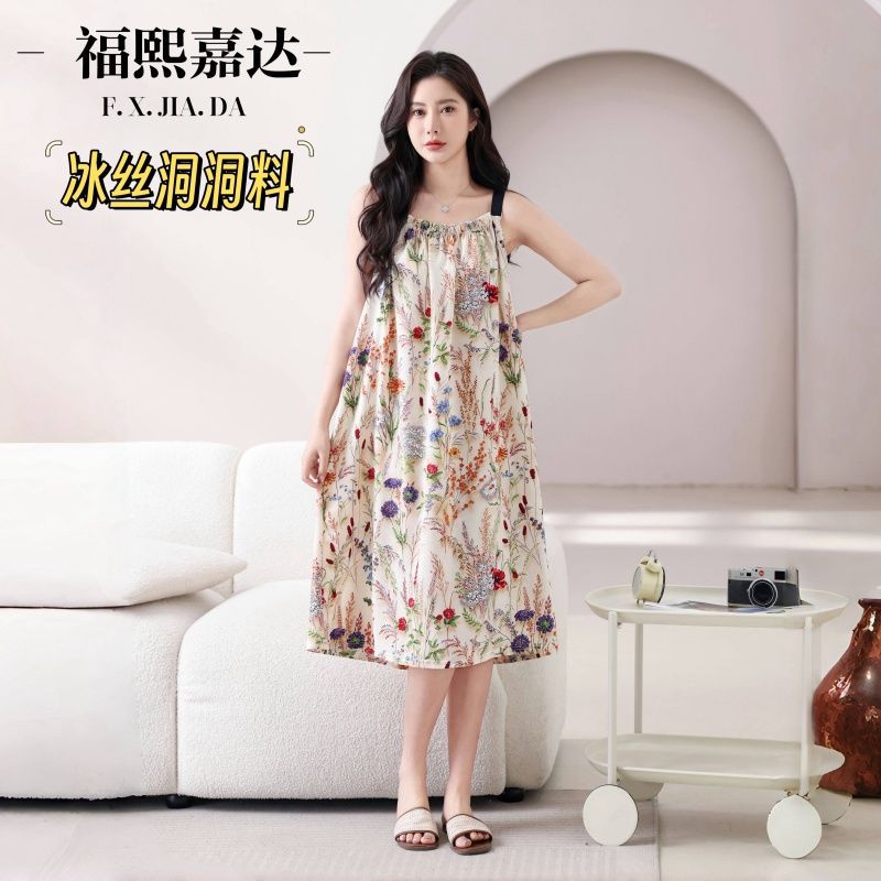 2025 最新 Fuxi Jiada アイスシルクサスペンダードレスセクシーなプリントレースアイスシルクマットスーツパジャマ