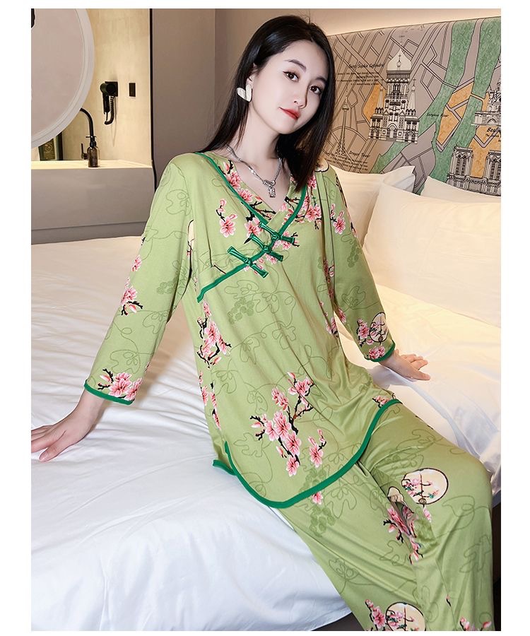 ネットの赤い起爆パジャマ中国風盤は女性の家の服のスーツの新商品の豪華な洋風のゆったりした大きいサイズを掛けて外に着ることができます。