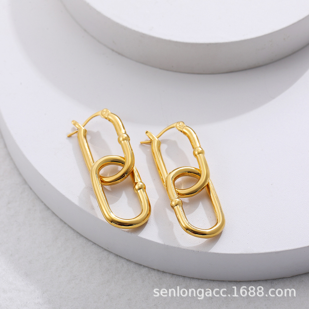 欧米の国境を越えた新しいモザイクドリルの女性イヤリングのアイデアフランスのレトロな金色の耳輪セット