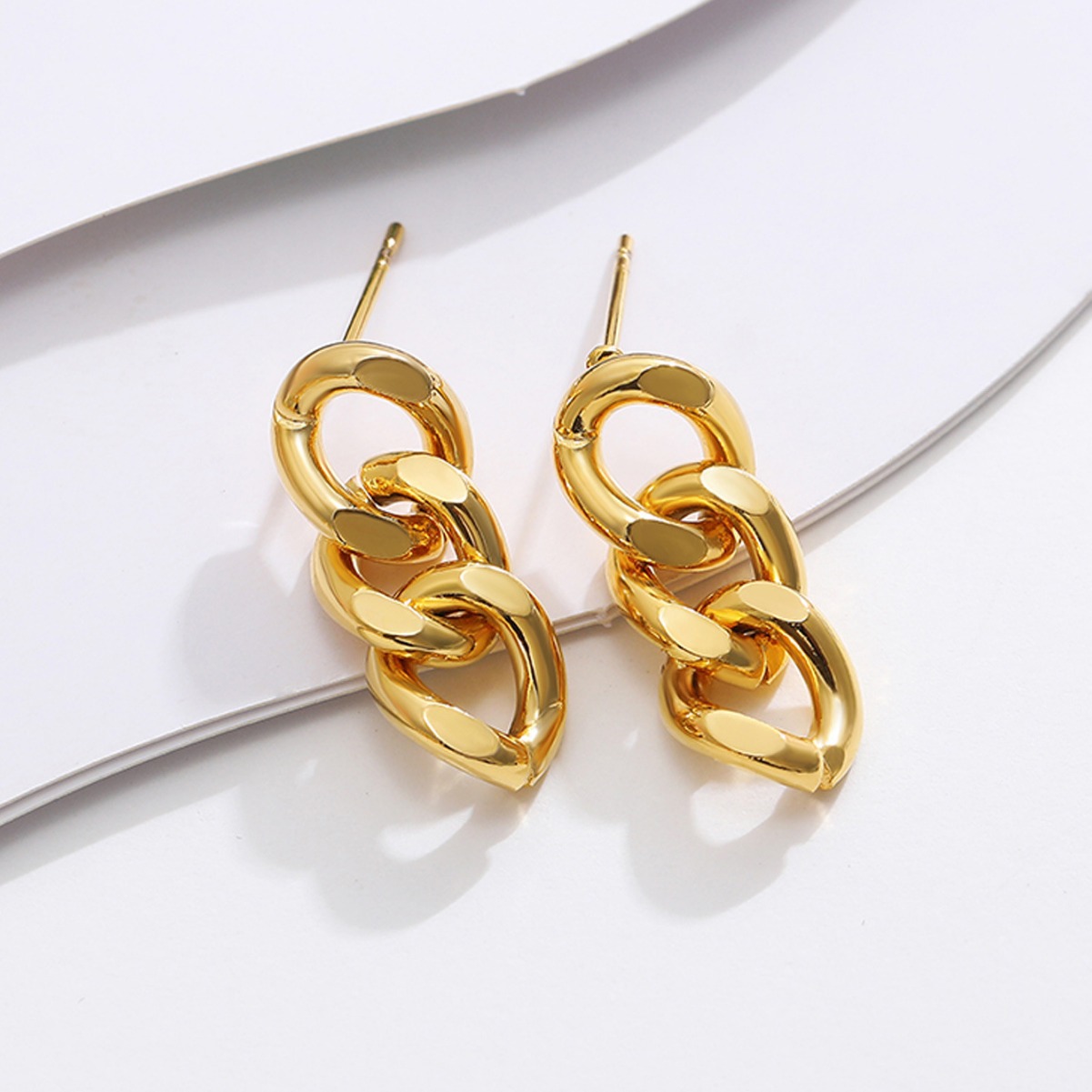 欧米の越境18kの真金のシンプルな気質の銅めっきの幾何学はダイヤモンドのイヤリングのセットを入れます。