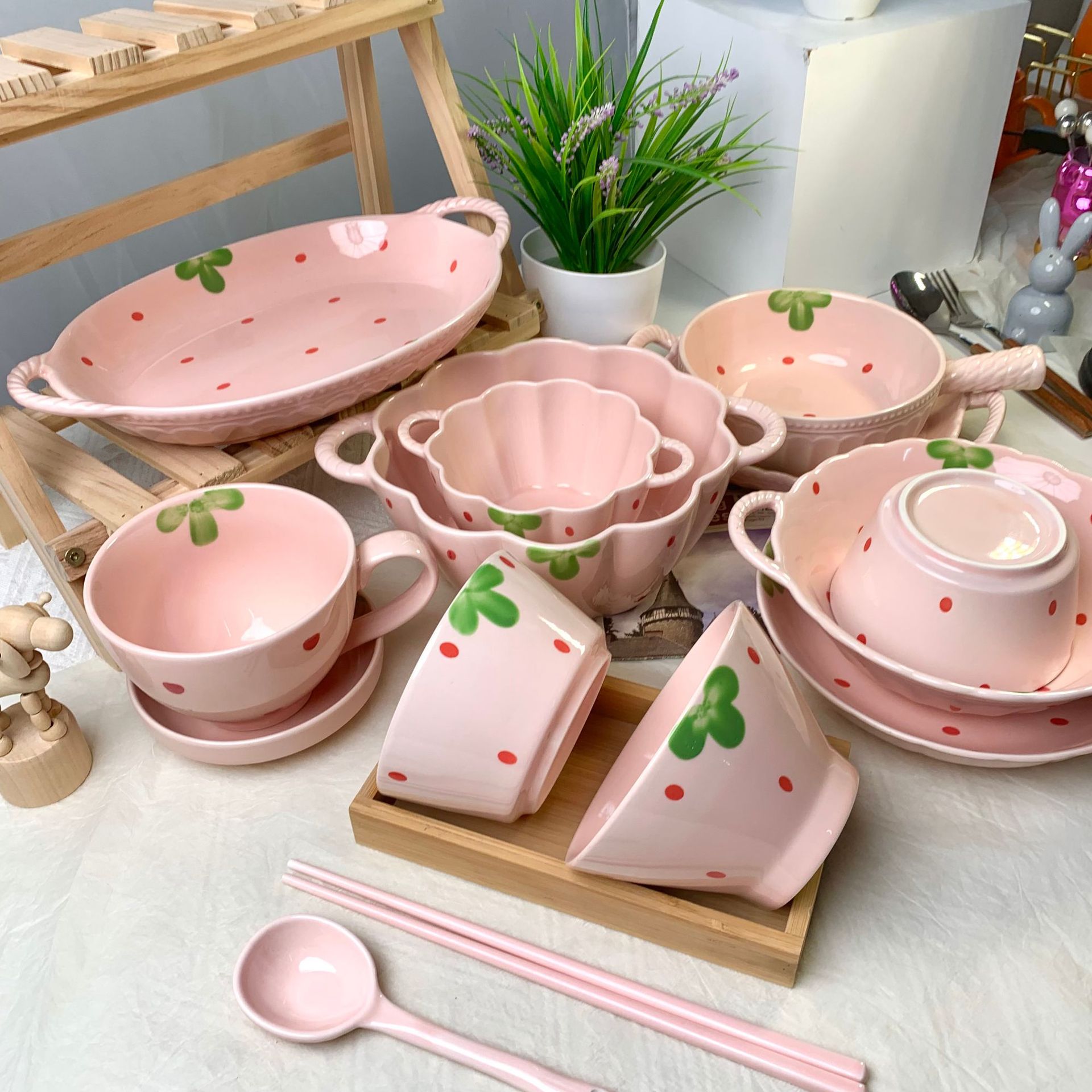 新しいイチゴセラミック食器かわいいボウルとプレート卸売家庭用プレート皿クリエイティブパーソナライズされたインターネット有名人イン