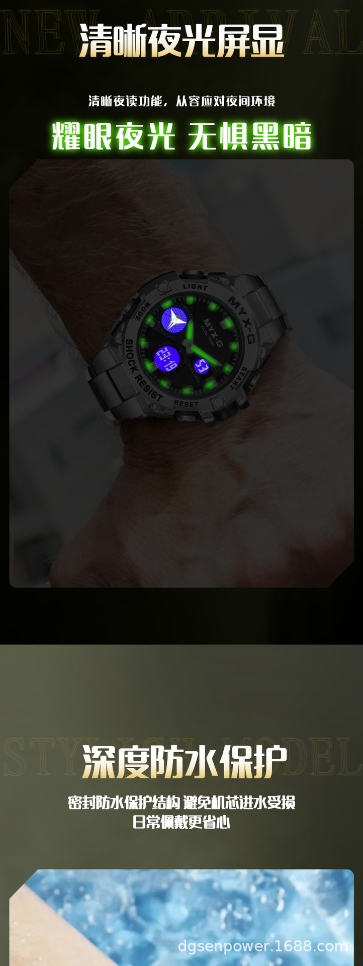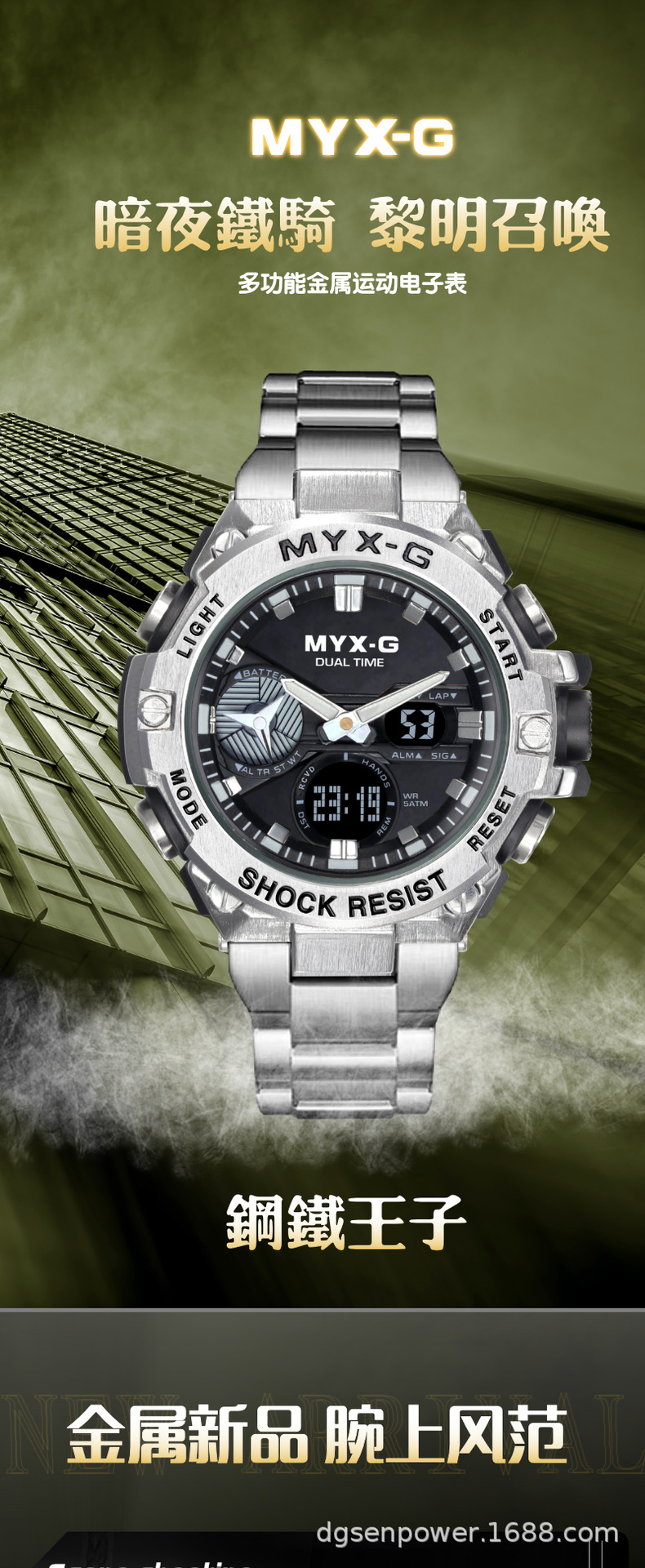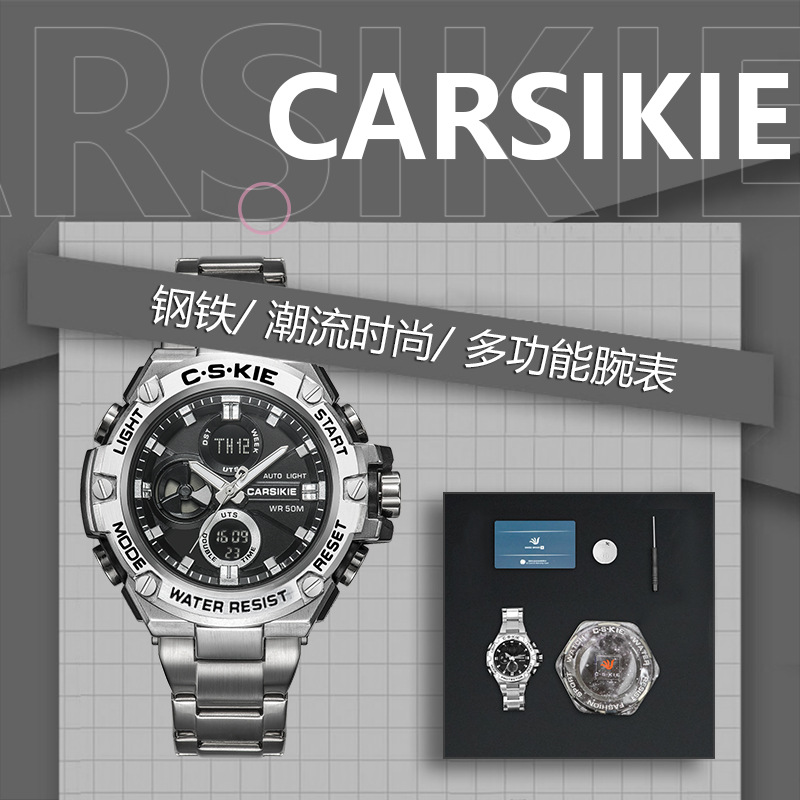 メンズ腕时计超钢の心ビジネス风多机能夜光电子クォーツダブルディスプレイ学生同期腕时计