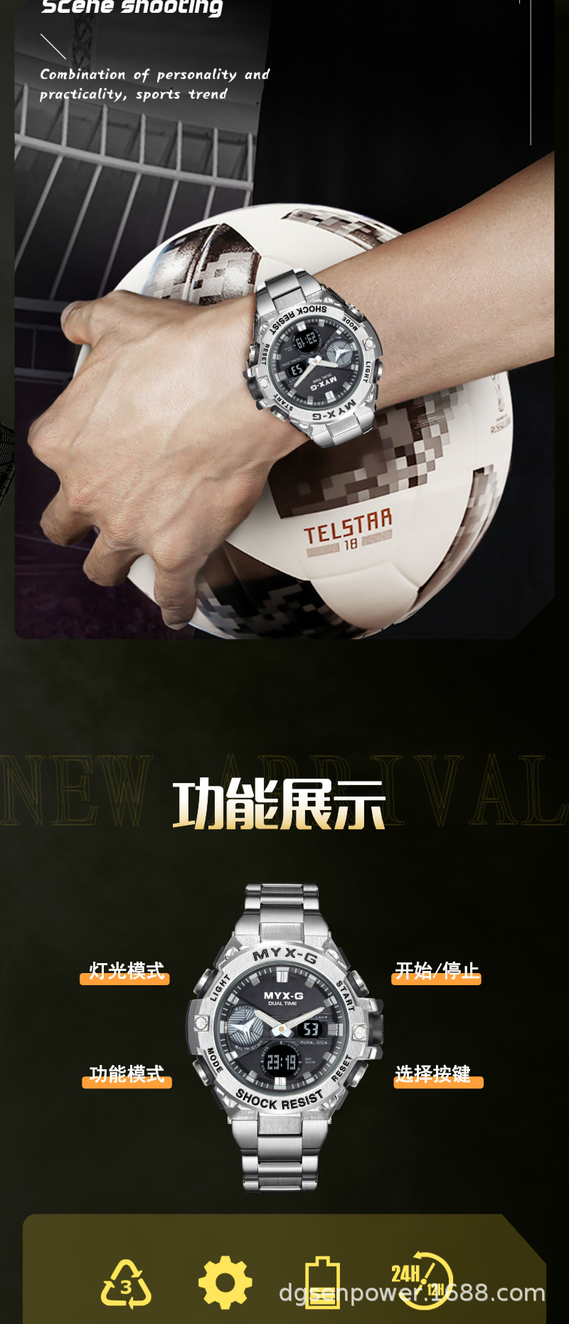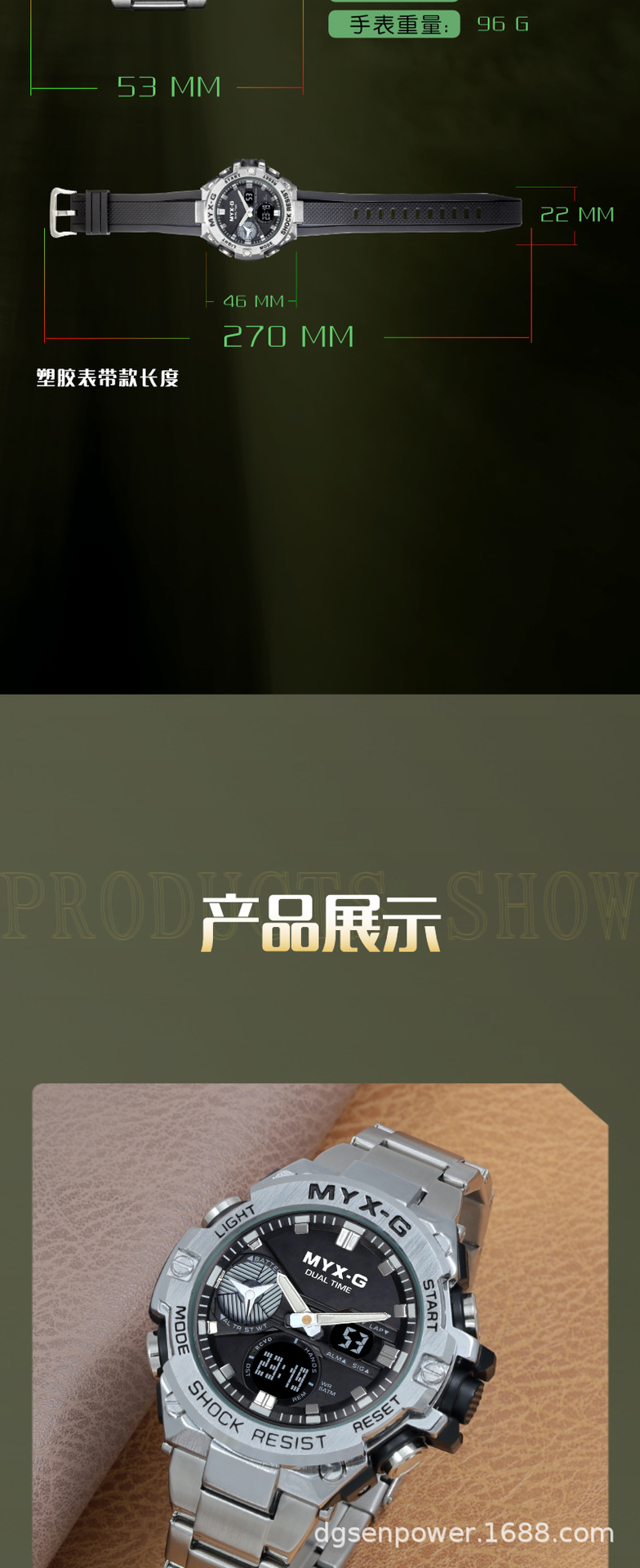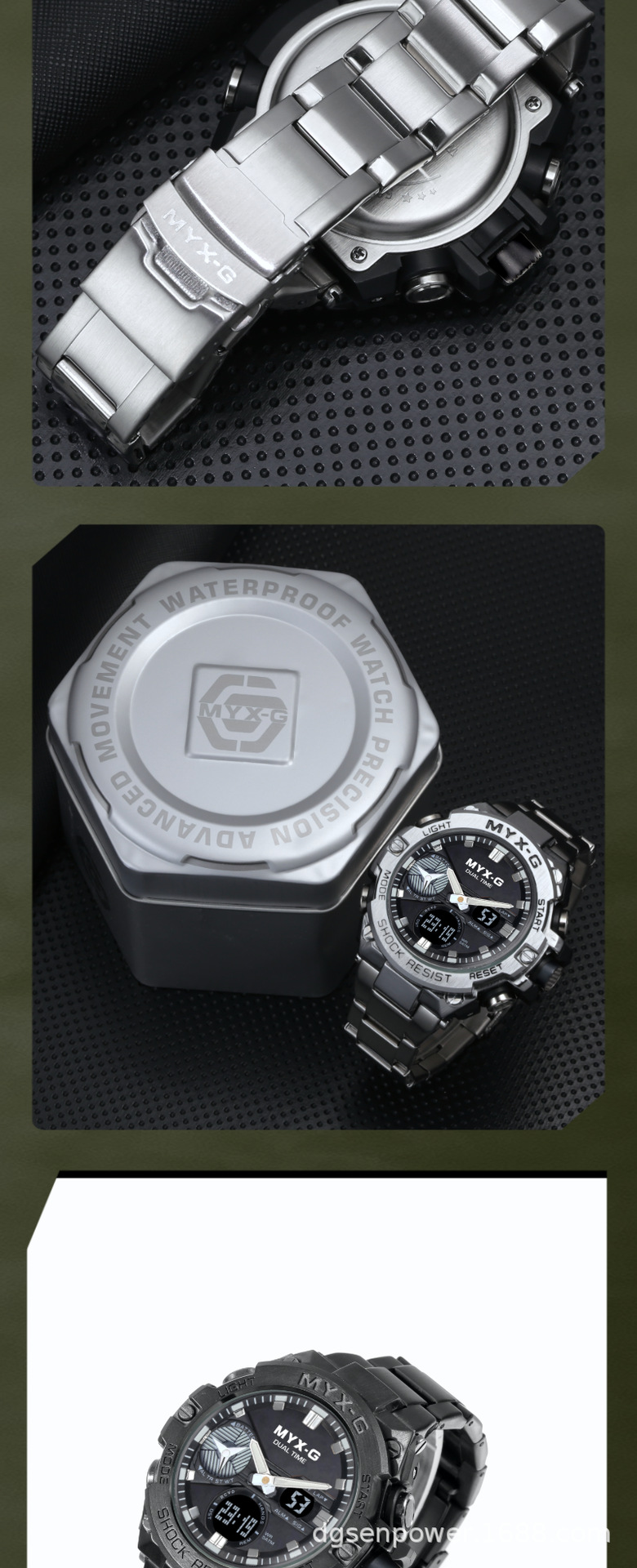 メンズ腕时计超钢の心ビジネス风多机能夜光电子クォーツダブルディスプレイ学生同期腕时计