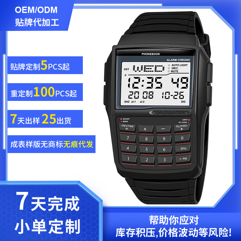 トレンド多机能レトロ腕时计电卓电话番号帐防水夜光电子腕时计メンズ腕时计男