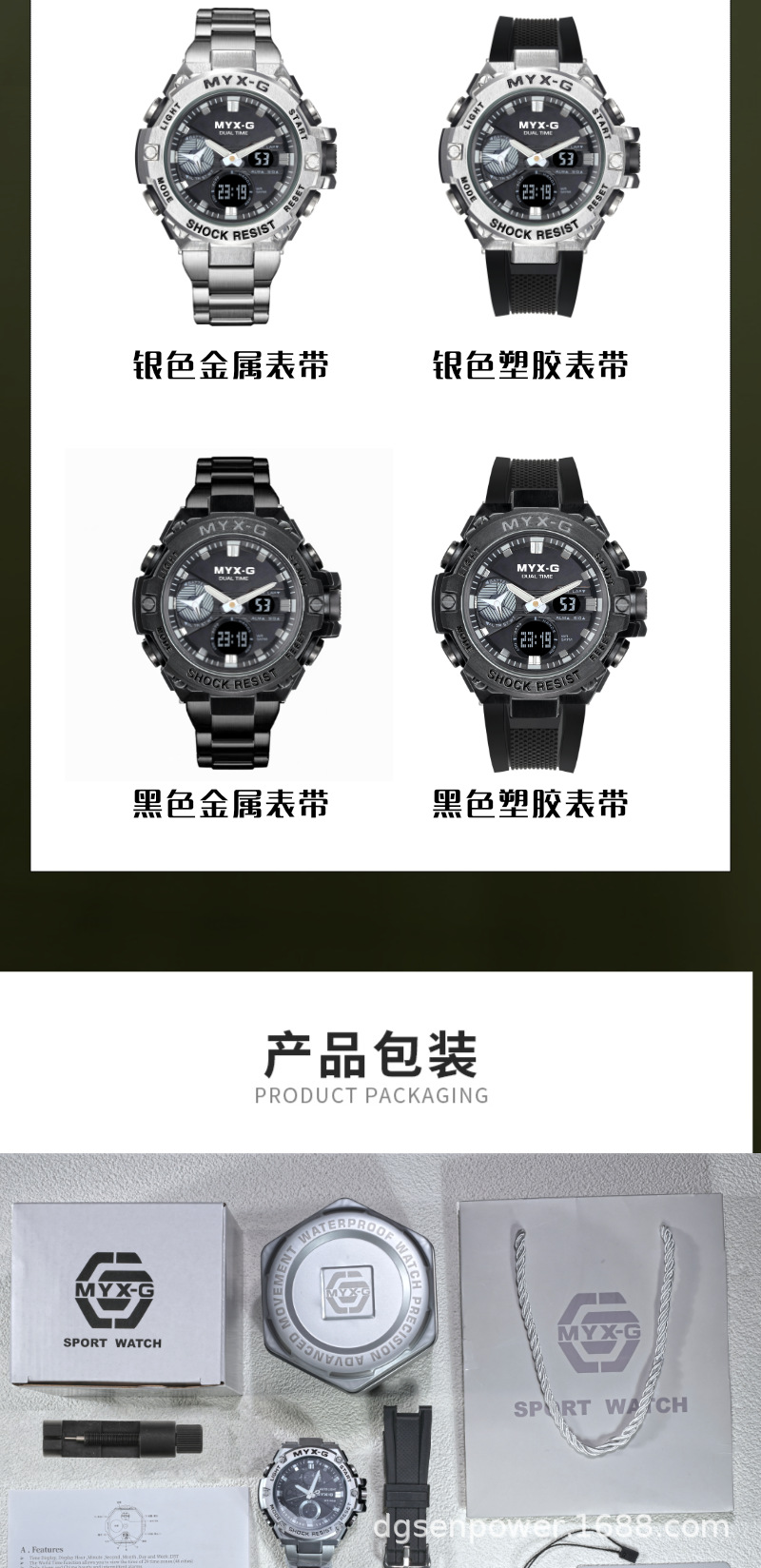 新型男子学生腕時計夜光防水双表示ムーブメント腕時計アウトドア時間運動ファッション腕時計