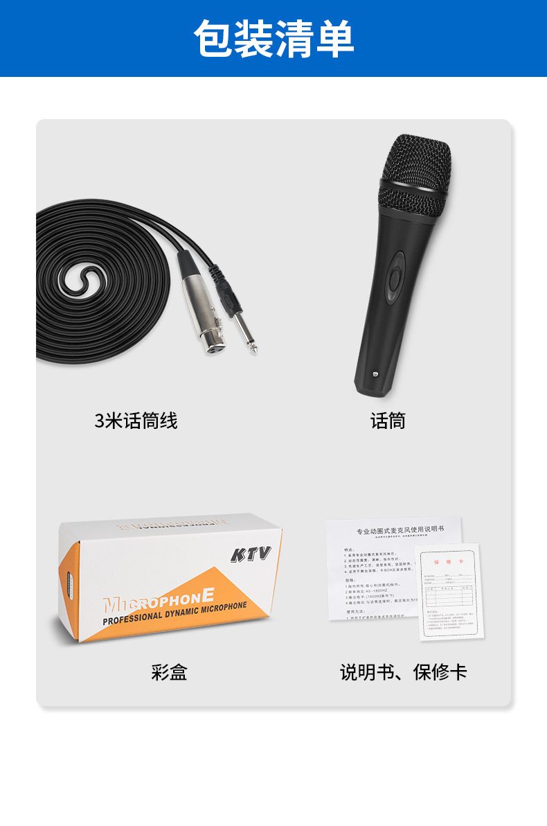 厂家直供动圈手持话筒家用KTV舞台演出K歌会议声卡直播有线麦克风