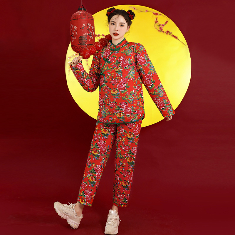 赤牡丹セット (綿入れ + 綿ズボン),桃花粉セット (綿衣 + 綿ズボン),桃花緑セット (綿入れ + 綿ズボン),桃花黄セット (綿入れ + 綿ズボン),東北大花セット (綿衣 + 綿ズボン),盤ボタン緑牡丹セット (綿入れ + 綿ズボン),赤い格子のセット (綿の服 + 綿のズボン)