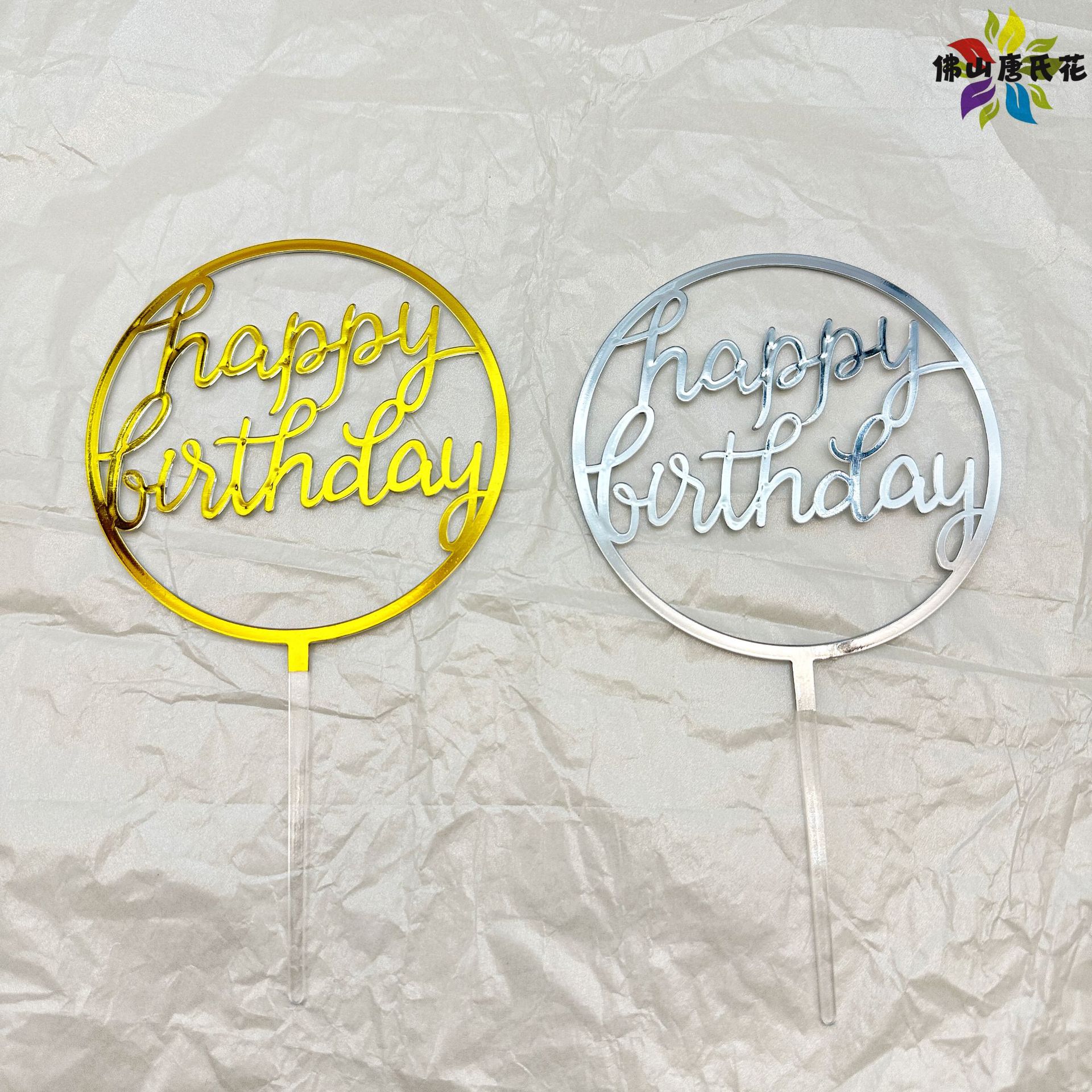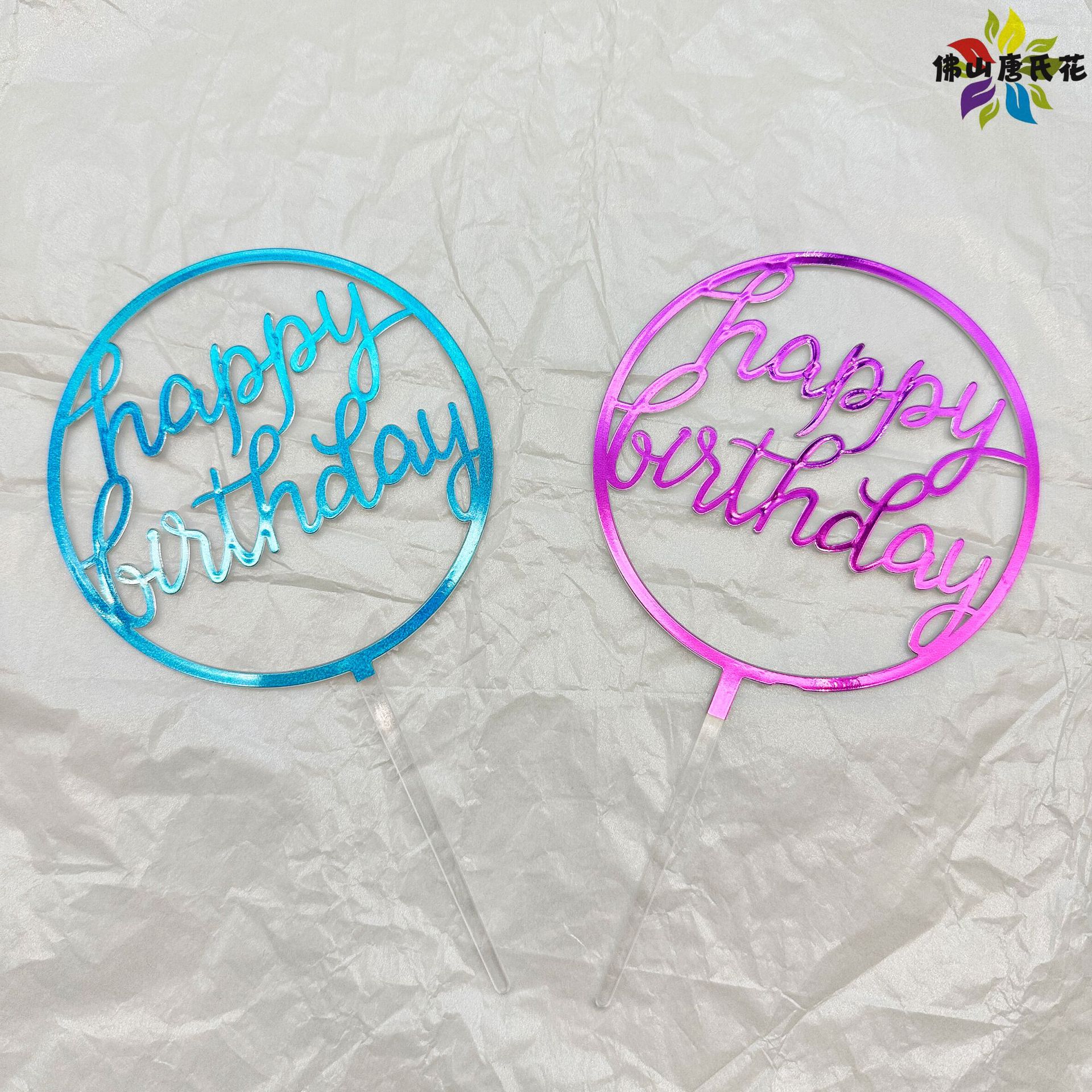 アクリルケーキイラストins風花UVカラープリントHappy birthdayデザート装飾プラグインクロス